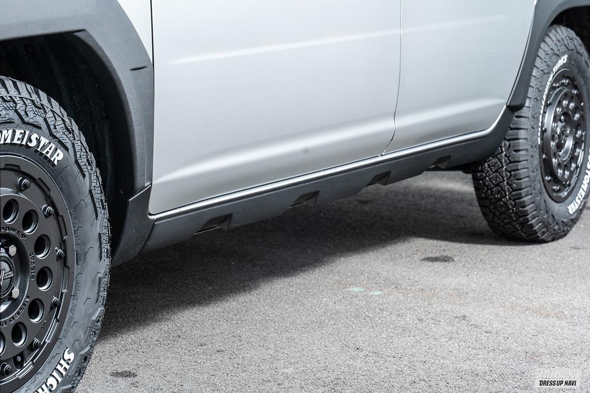 シルクロードといえば、昨年連載していた本誌の『“映え”サクシードにする大作戦!!』で装着した、フェンダーエクステンションをリリースしている老舗アフターパーツメーカー。そんな同社より、待望のサイドステップガードがデビューしたのだ。フェンダーエクステンション同様、ABS樹脂の真空成型によりフィッティングは抜群。黒シボ仕上げだから塗装不要で、装着は両面テープで貼るだけ。営業車をSUVクロス系ルックにチェンジしているぞ。