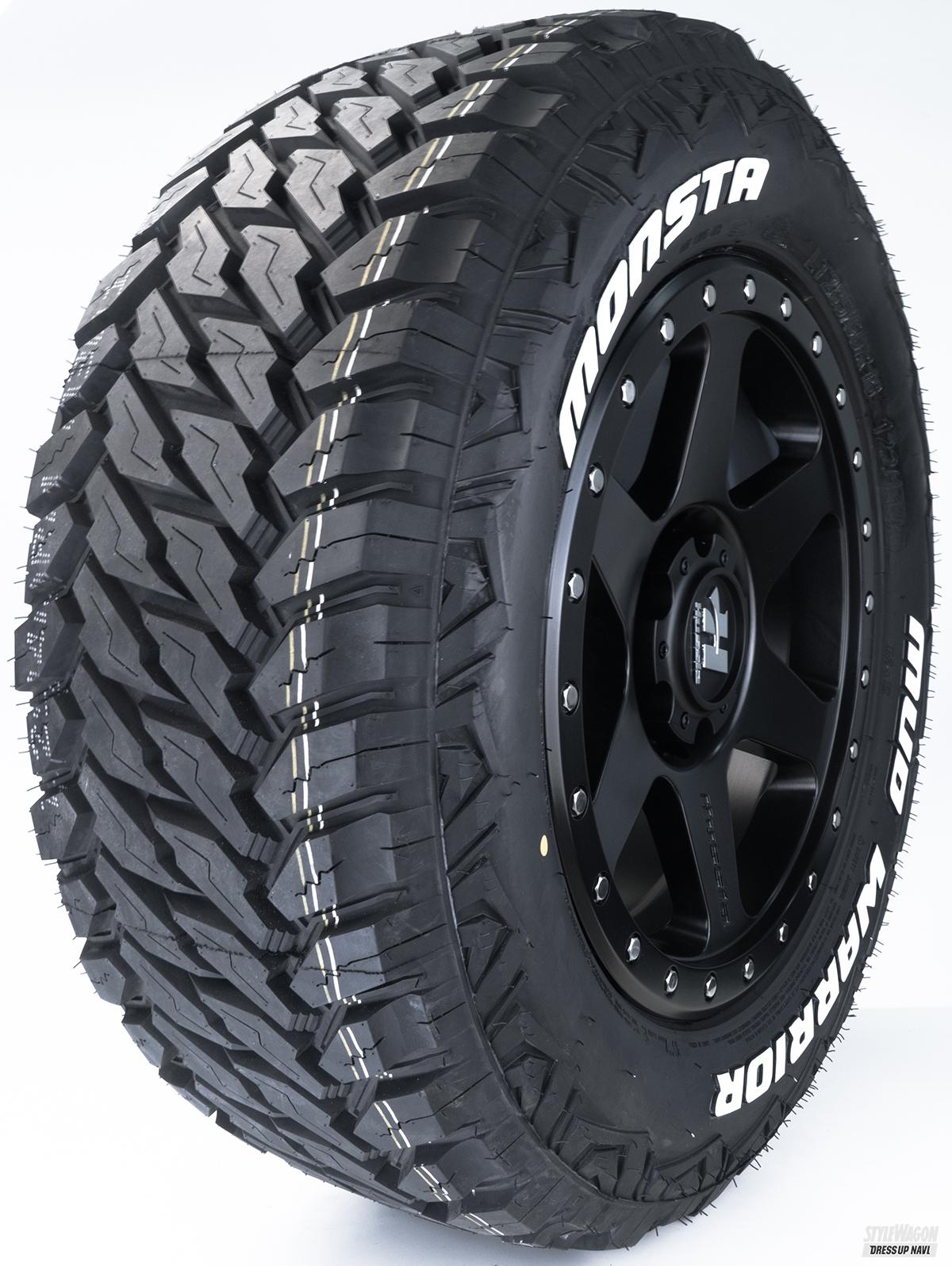 ぬかるんだ泥道や岩場などオフロードの中でも悪路と呼ばれる道を走る場合に最適なタイヤがM/T(マッドテレーン)。オーストラリアの砂漠や悪路で鍛えられたマッドウォーリアーは、見た目のタフさだけでなく、抜群の悪路走破性も実現。アグレッシブなトレッドパターンや太い溝は、泥や小石などの排出性に優れ、泥道や岩場でもしっかりとグリップ力とトラクション性を発揮。またサイドウォールのパターンは、タイヤの側面を岩に当てながら進むロッククローリングなどでは大切な武器となる。さすがにノイズや振動はA/Tに劣るが、M/Tタイヤとしては段違いの快適さを誇る。ドレスアップ派にはうれしい片側ホワイトレターの設定。