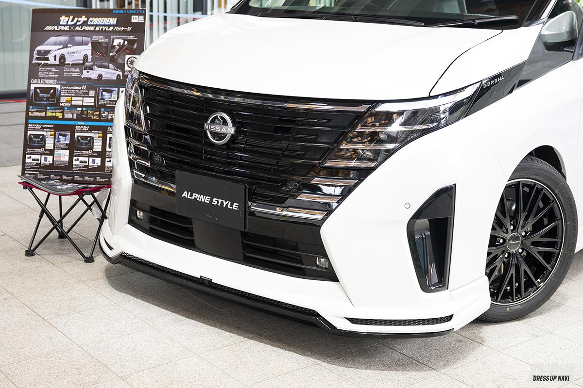 今回のコラボによって、アルパインスタイル、アルパインが展開するカーエレ製品のパッケージ販売はもちろん、アルパインスタイルが扱うニューズデザイン製エアロパーツをはじめとしたカスタム製品も同ディーラーで購入できるようになる。その皮切りとなったのが、現行C28セレナ。お披露目は7月15日(土)・16日(日)に奈良県コンベンションセンターにて開催された「奈良日産 WANDER LAND 4th」というイベントで、奈良日産専用の塗り分けが施されたエアロパーツをまとったセレナは注目の的となった。まだまだカスタムパーツのラインアップが少ないC28セレナだが、ディーラーでカスタム済みのコンプリートカーを購入できるのは嬉しい限り。今後はさらなる車種展開の可能性もあるようで、奈良日産の動きに期待!