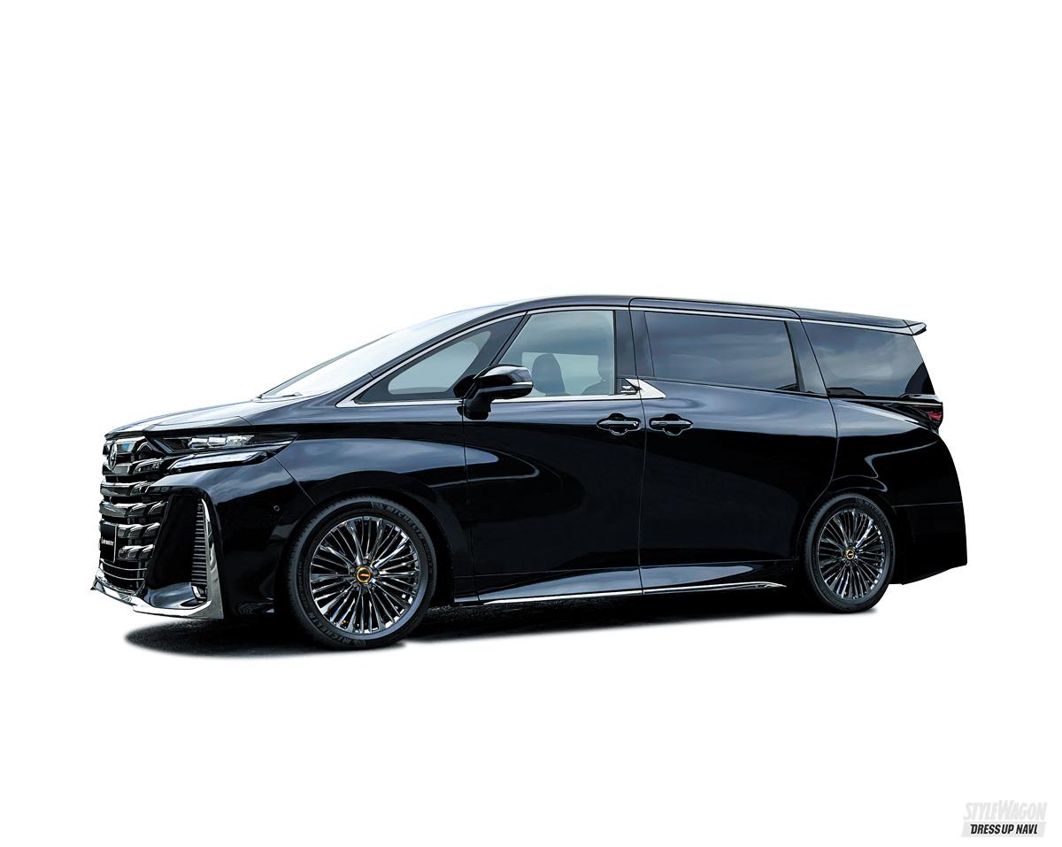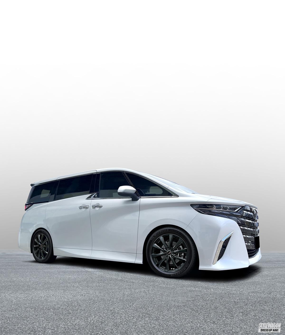 もうひとつはレアマイスターからの新星となるLFイゾラ。先端へ向かうにつれて幅を広げる10本スポークは、天面に鋭いギミックを加えたシンプルながらも立体的なフォルムが魅力。一部グレードには非対応となってしまうが、これも新型アル&ヴェル用の設定がアリ。重厚感もしっかりと薫るデザインだけに、その意匠は新型アル&ヴェルの大きなボディとも好相性だ。