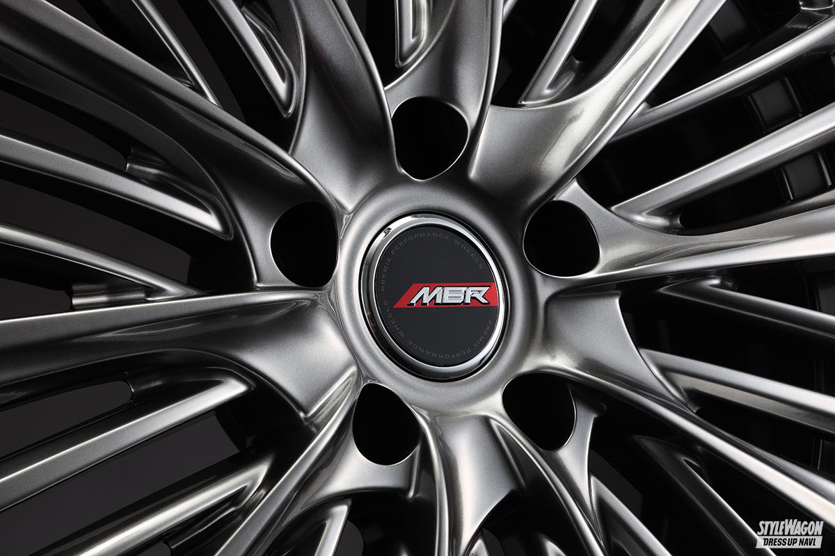 まずは大人気プレミックスのMER‐X。複雑にヒネリを効かせた5組のツインスポークと、ストレート基調なサブスポークとを折り重ねたダブルフェイスデザインで、まるで生き物のような妖艶さを放つそのスタイリングは最高峰ミニバンにもピッタリ。これに新型全グレード対応のP.C.D.120が追加された。