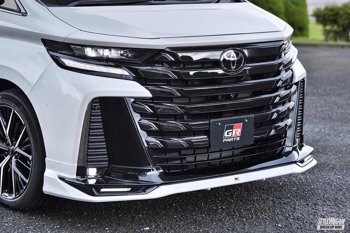 GRパーツとは、トヨタが積極的に参加しているモータースポーツから得た知見を元に商品化したアフターパーツシリーズ。対象車ごとに展開は異なるが、新型では、ヴェルファイア専用としてボディキットを、アル&ヴェル両者に走りを変える機能パーツをそれぞれ展開している。