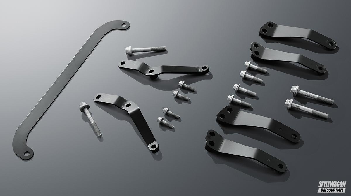 そんなボディキットにあわせて手に入れたい各種機能パーツは、乗員の快適性を高めるGRパーツお馴染みのダンパーのほか、ハンドリングの応答性を高めるブレースキットなどを展開。他社には真似できないパーツが潤沢に揃う。