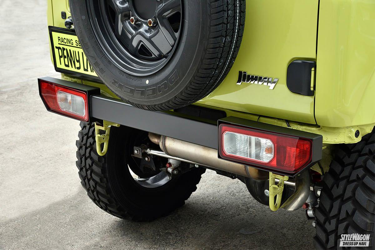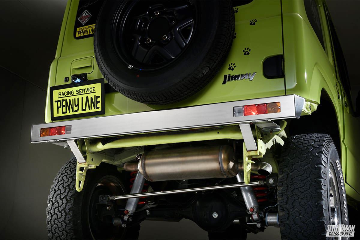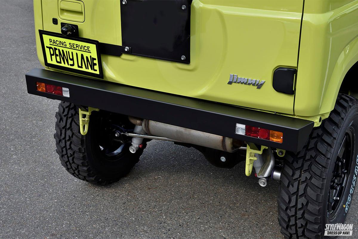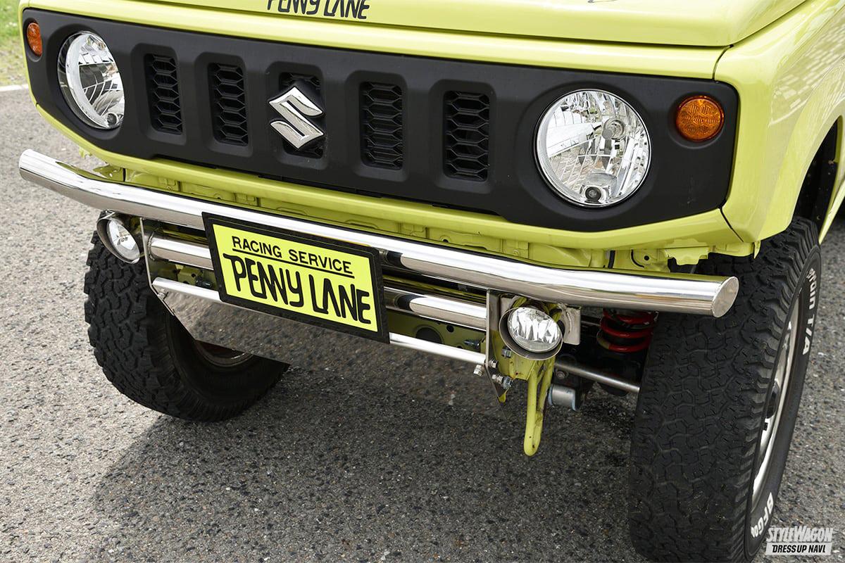 JB64が発売されてから、スクエアなデザインには金属製のバンパーが絶対似合うと読み、どこよりも数多くのデザインのバンパーを販売しているペニーレイン。ブラック塗装のスチール製バンパーだけでなく、ステンレス仕様のラインアップもあり、オフロードテイストだけでなく、ドレスアップ要素もかなり高い。