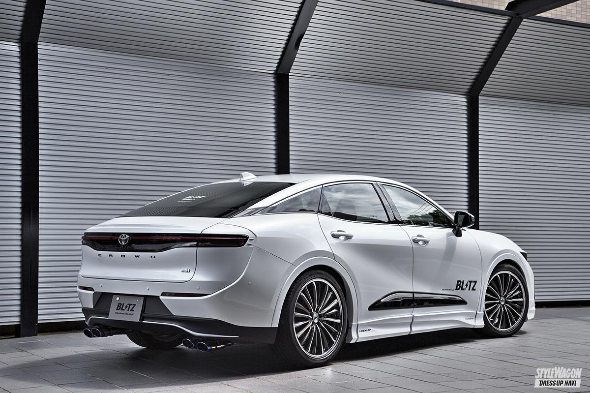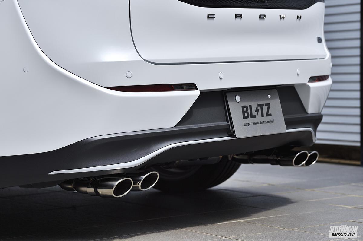 ブリッツが誇るニュルスペックマフラーは、クルマのキャラクターを見極め、それにマッチする性能やデザインを追求した人気マフラーシリーズ。最新作となるクラウンクロスオーバー用に対しては、テールとマフラーを別体式とすることで、自分好みのアレンジも可能な「カスタムエディション」を用意する。