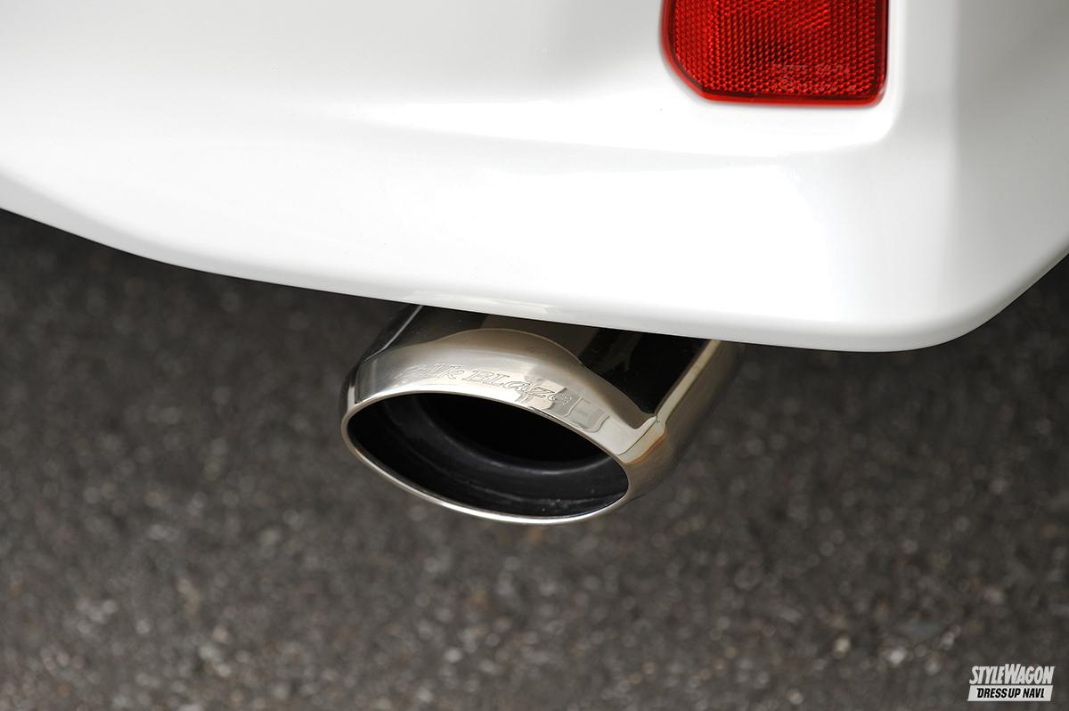 そこで外せないのが、シルクブレイズの車種専用マフラーカッター。なんと言っても最大の特徴は、車種専用だからこそのフィッティング性能。純正リアバンパーとマフラーの形状にあわせてカッターの角度を最適化することで、誰でも簡単かつ確実に取り付けられるうえ、ナチュラルに存在感のあるリアビューを演出できるのだ。マフラーカッター本体には高品質ステンレスを採用し、美しい質感だけでなく優れた耐久性と耐食性を確保。デザインやカラーは車種によって異なり、今回撮影した30アルヴェル用では全4種類を設定。保安基準適合なので、安心して装着が可能だ。