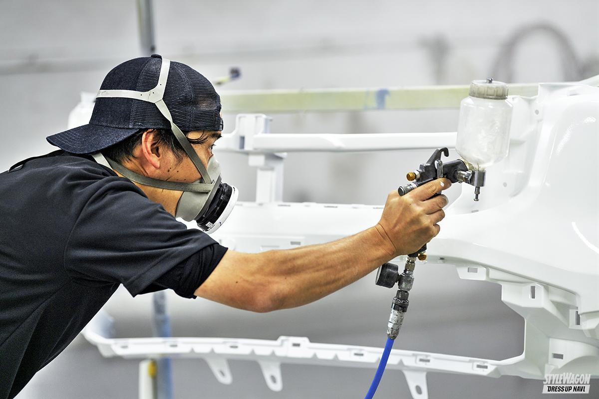 VIP系カスタムが全盛だった2001年にスタートした「リワークス」。セダンやワゴンなど、様々なクルマへのボディペイントを施工してきたプロショップとして、全国的に知られた存在だが、近年はマツダ車に強いお店として人気。「5年くらい前、CX-5のお客さんにワンオフパーツを製作したんです。そのパーツをインスタに載せてくれたみたいで、ちょっとバズったんです」と語るのはリワークス・澤田代表。それからマツダ車ユーザーが訪れるようになったという。「昔からのお客さんは入りずらくなった(笑)と言ってますが、別にマツダ車専門ではないのでどのメーカーもOKです」。これまでに蓄積したノウハウ、技術力を駆使してオンリーワンを製作するこだわりを体感できる。カスタムのほかにも車検・修理やメンテナンスなども対応しており、誰でも気軽に足を運べるお店だ。