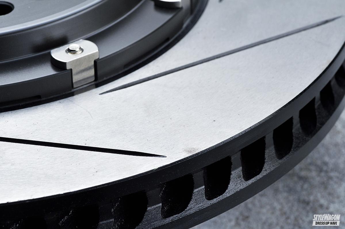 パワーアップやフットワークチューンによって、快適に走れる200系に仕上がったとしてもストッピングパワーが不足しては本領を発揮できない。そこでチェックしておきたいのが、ブレーキの総合メーカーであるアクレが、ハイエース向けに開発したモノブロック4ポットキャリパー。多くのハイエースユーザーが選ぶホイールサイズに合わせ、17インチから装着できるのが大きなポイントになっている。