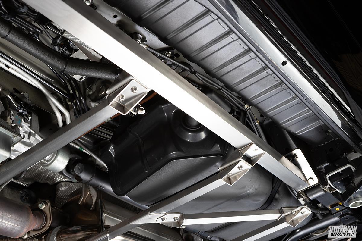 ハイエースのボディは、いわば長方形の箱。各ドアやリアゲートなど開口部も多いため必然的にボディ剛性は不足しがちになる。せっかくサスペンションを変えても思ったより効果が現れないときは、ボディ剛性を疑うのが吉だ。そんなときは、ハイエースの足まわりを得意とするチェックマンから発売されているエクスクルーシブブレースをぜひ! 箱がカッチリすれば、サスの効果もよくわかるぞ!