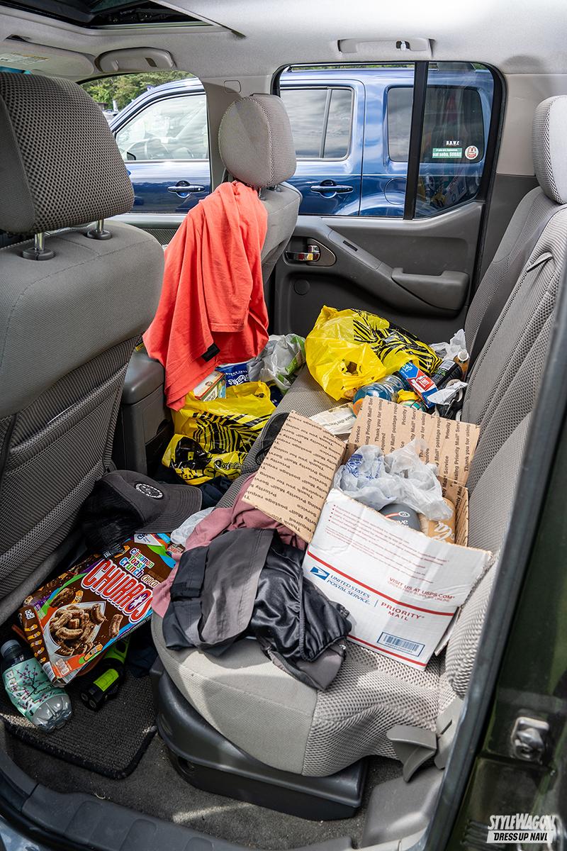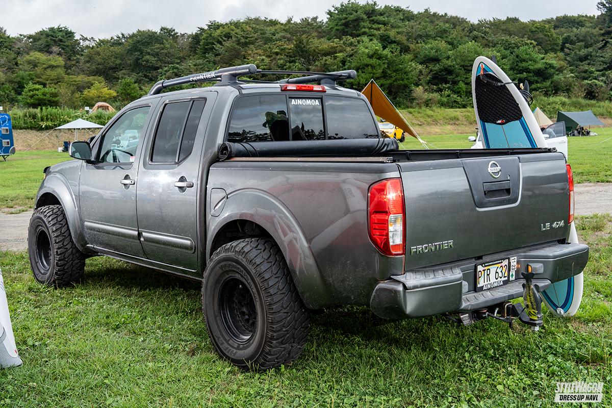 ハワイに恋い焦がれたJoeとKiiは、日本に居ながらリアルなアイランドスタイルを再現することに躍起!! 設定はハワイ大学マノア校に通っているカップルで、バック・トゥ・ザ・フューチャーのマーティよろしく家のピックアップを乗り回してるパターン。なので車内は大学の教材をはじめ日常のゴミが散乱した状態まで再現してるんだけど、オーバーフェンダーに負けない迫力のMTタイヤの存在感も相当なモン!!