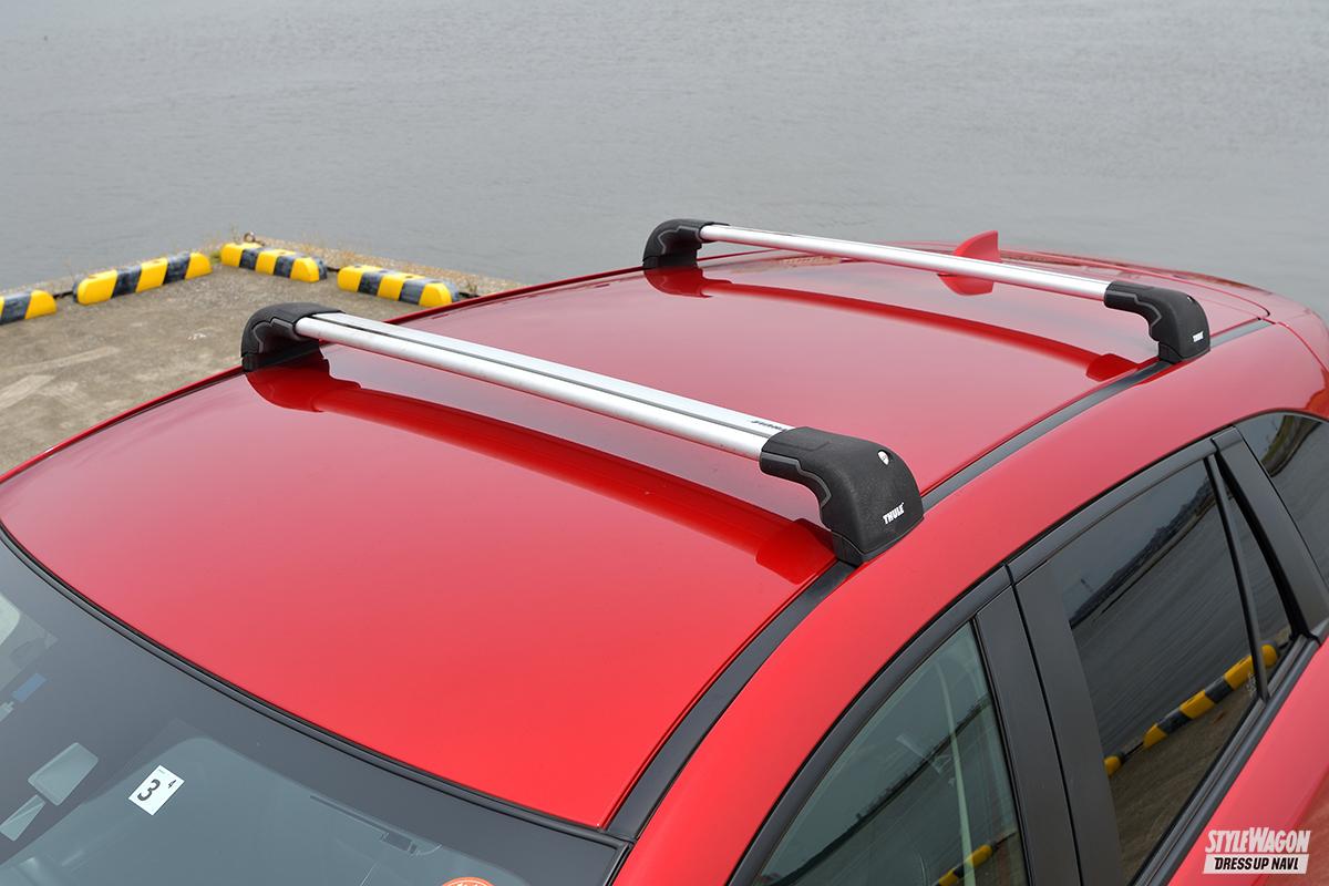 ルーフキャリアを設置すると、走行中の風切り音が気になる場合もある。ただし最近は風切り音を抑えたモデルも多く、特にTHULEのウイングバーは、スクエアバーに比べその違いが明らか。コスト的には少々高くなるかもしれないが、そういった部分の比較も重要だ。