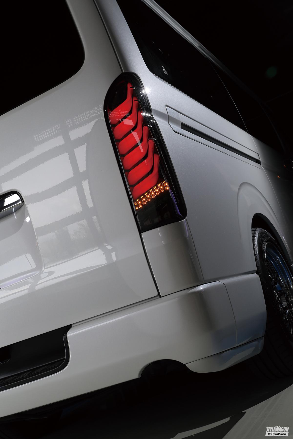 選択肢は「Z(ゼータ)」と「Σ(シグマ)」とあるが、とくにオススメしたいZは、大ヒットとなった同社の名品「ジュエルテールランプレボ・タイプ1」のデザインを継承したフルLEDのライトバー搭載モデル。非点灯時でも先進性十分だが、点灯時はさらに効果大。トレンドとなっている、ヒカリが流れるシーケンシャル機能も搭載した、売れるのも納得の人気テールレンズだ。