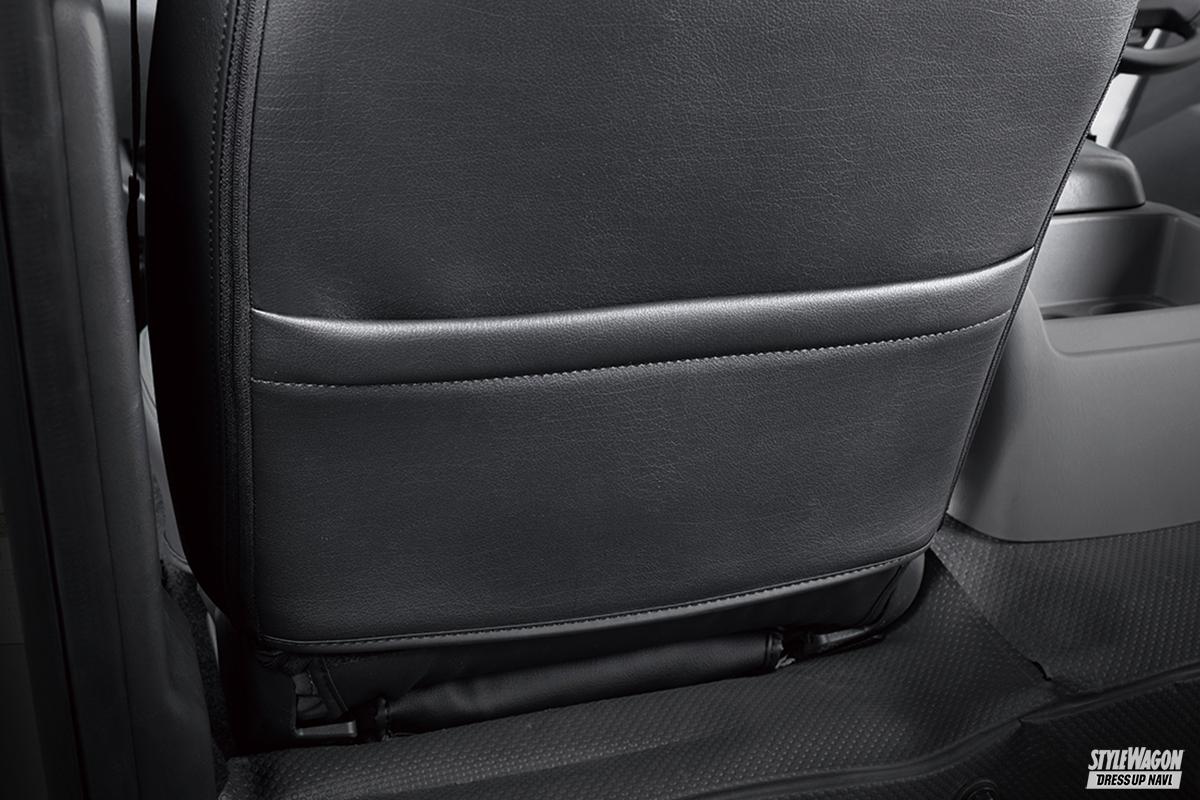 色々なブランドから多種多様なシートカバーが発売されているが「ユーロスポーツシートカバー」は、あるようでなかったタータンチェック柄が最大のポイント。背面と座面のシートセンターに、ヨーロッパ製のポリエステルタータンチェック生地を採り入れた逸品で、快適な座り心地と立体感も同時に追究している。(センター以外の)シートカバー側面部には、フィット性が高く耐久性にも優れたソフトPVCレザーを採用と、スポーツカジュアル感を意識した、ハイエース用シートカバーとしてはこれまでにないモデルだ。ソフトPVCのベースレザーはブラック1択だが、センターや縫製は6色からオーダー可能。カジュアル路線とはいってもシックにも、よりカジュアルにも振ることができる。