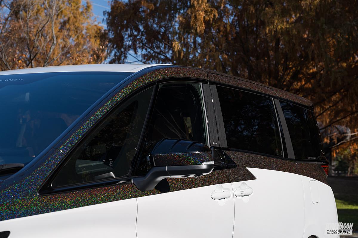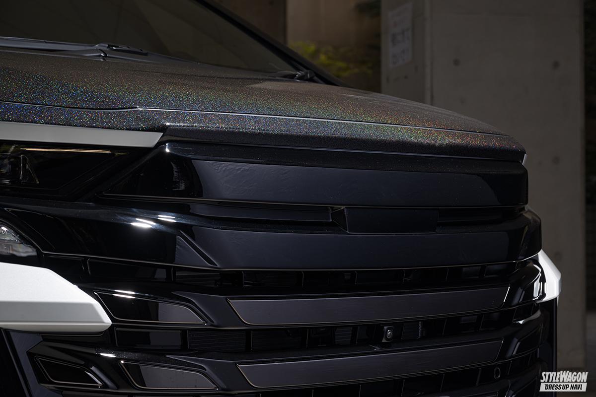 しかも今作、それぞれのキャラクターに合わせてフロントのデザインを変更しているという点もポイント。アルファード用はボトムに力強いブロックデザインを投入し、車格に相応しい重厚さも演出。一方のヴェルファイア用はターボの設定があることから、ワイドなダクトをボトムに配置してコーナー部のエッジを強めるなど、よりスポーティな印象に。スリットダクト風を取り入れたサイドステップ、ブロックデザイン採用のリアアンダースポイラーは共通デザインとなるが、アルとヴェルそれぞれの特徴や性格に配慮したデザインが取り入れられている。