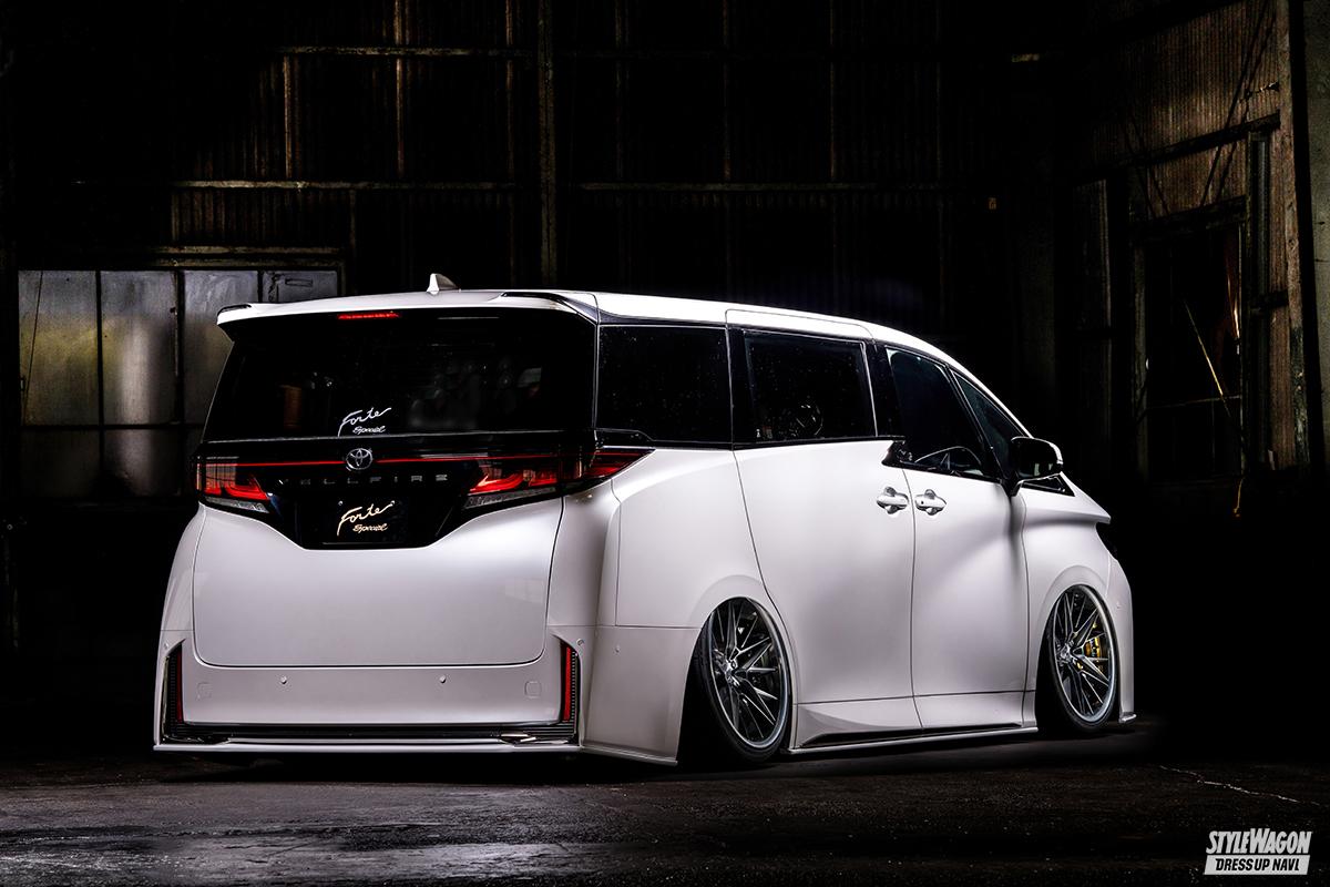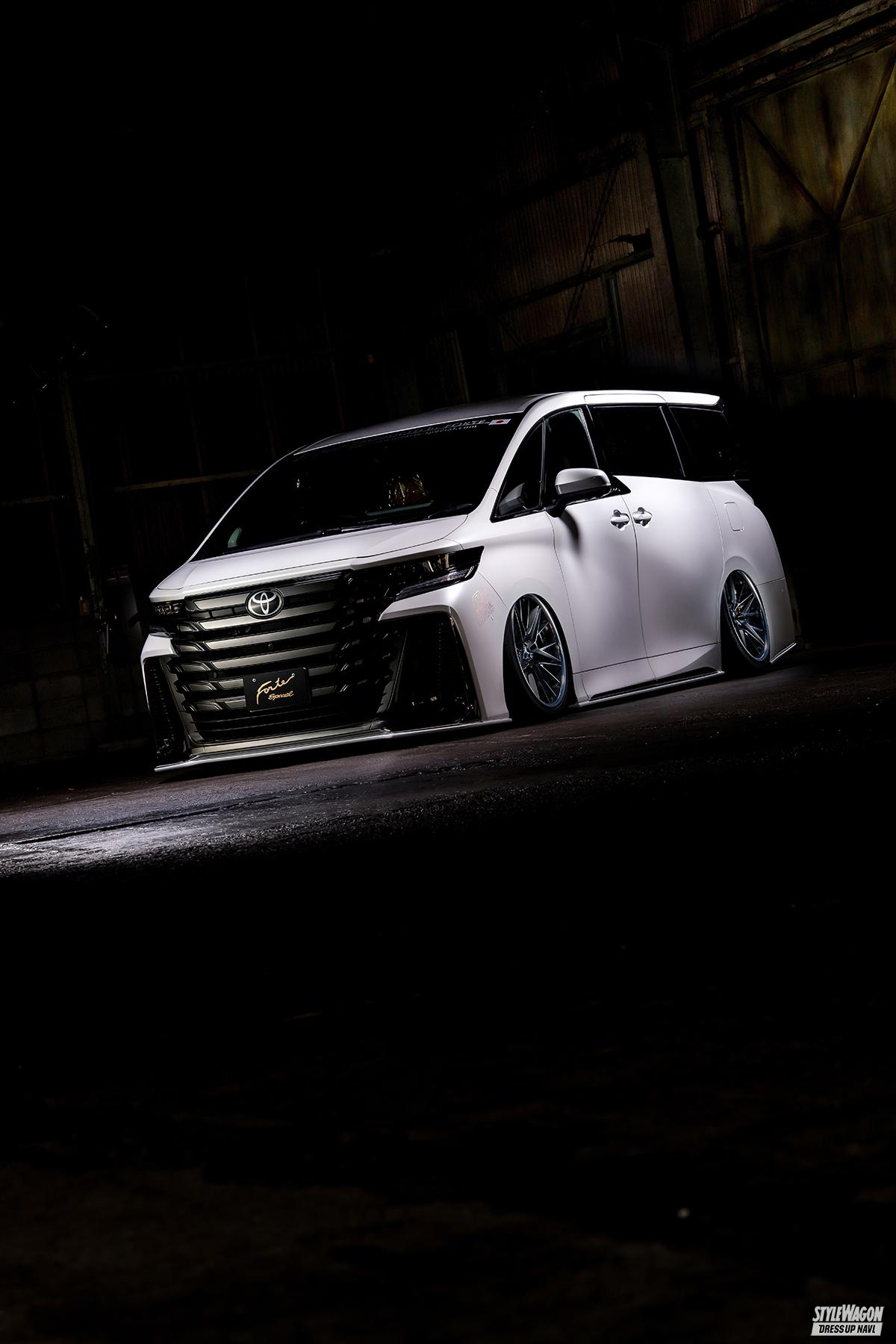 地を這う車高短フォルムに、絶妙にネジ込まれた大口径21インチ。いち早く40系ボディキットを完成させ、具体的なカスタムの方向性までを指し示したのは愛知県のフォルテ。