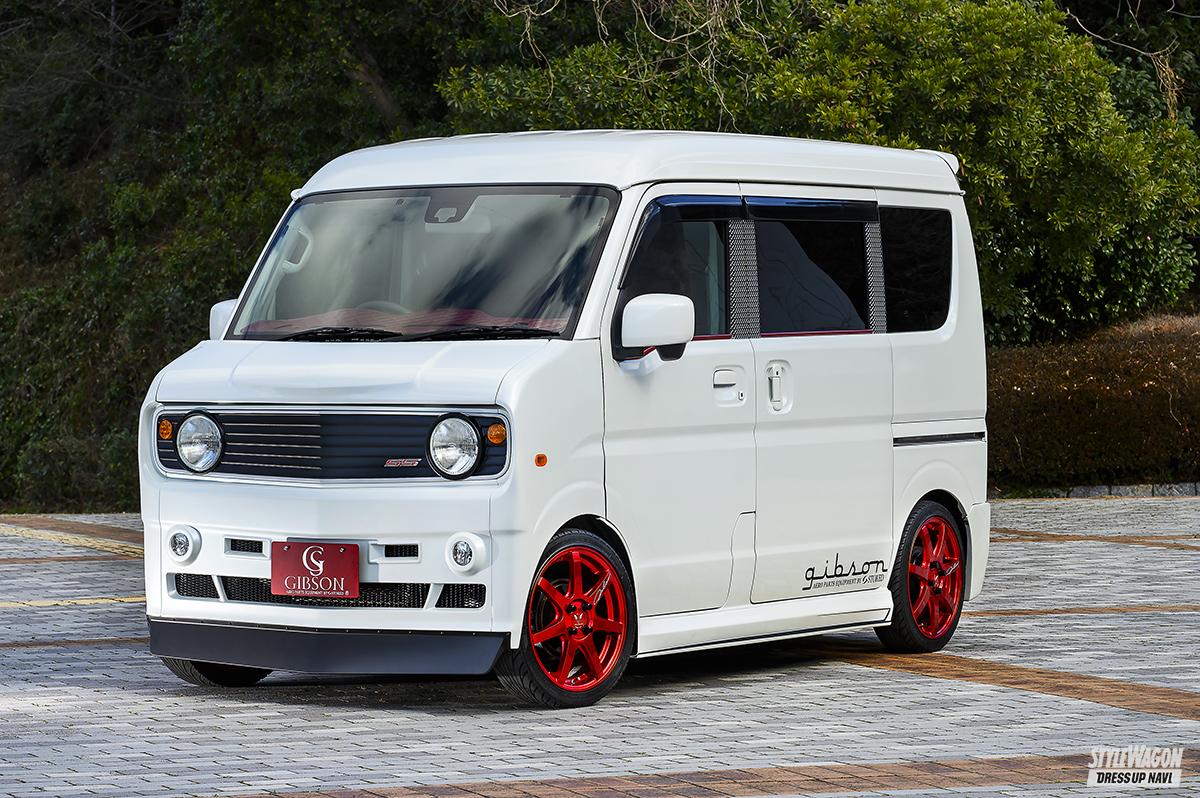 軽カーは、クルマの印象をガラッと変えてくれるフェイスチェンジキットが他のジャンルに比べると大いに盛り上がっている。特にエブリイに関してはノーマルの表情がシンプルなだけに、装着後の「変わり映え感」がかなり大きい。現状でもエブリイ用のフェイスチェンジキットが数多く世に出回っているが、「そう来たか!」と思わせてくれる斬新なモチーフに目を付けたのが、ハイエースのカスタマイズパーツ開発でおなじみのギブソンだ。