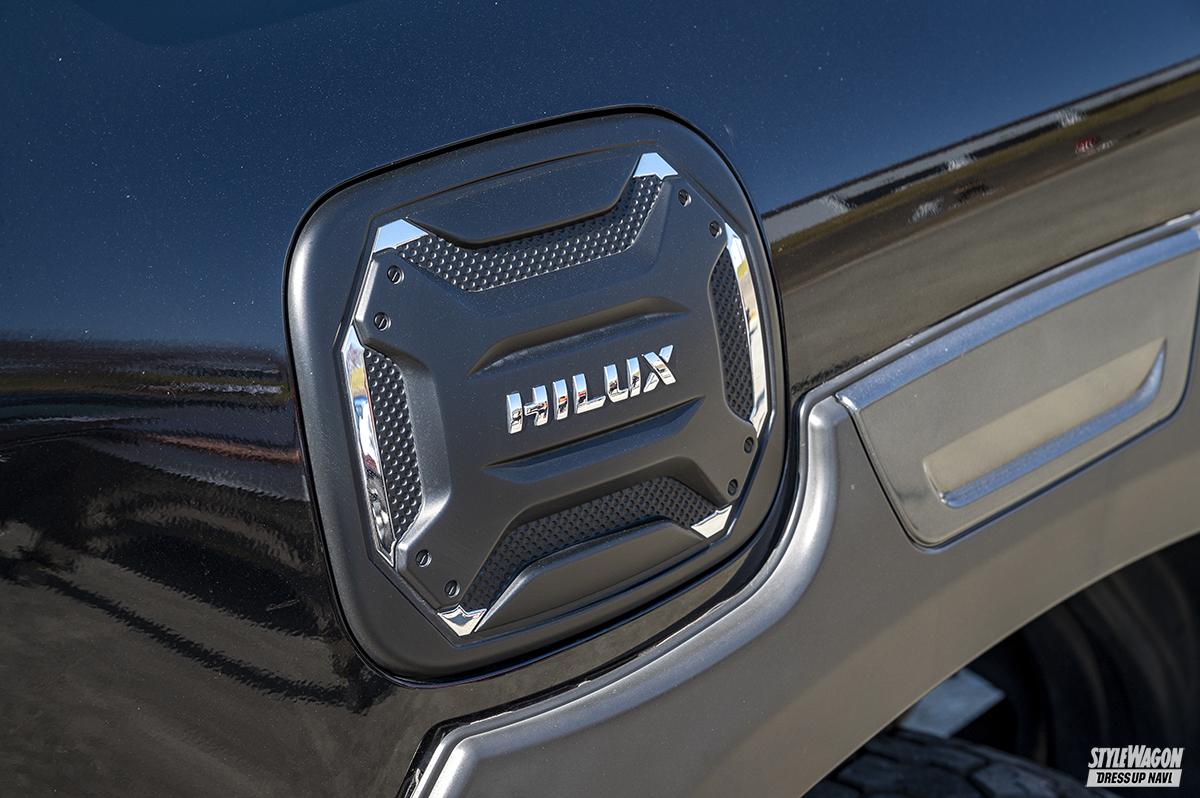 トリビュート、ステップワゴン、215サーフを経て、3年ほど前に現行の125ハイラックスに乗り換えたというやぎいさん。ラプター塗装のフロントグリルやロジャムのバンパーエクステンションなど、ブラックを基調としたカスタマイズで、持ち前のワイルド感をより一層強調。ホイールはKMCのKM718サミットを選択。