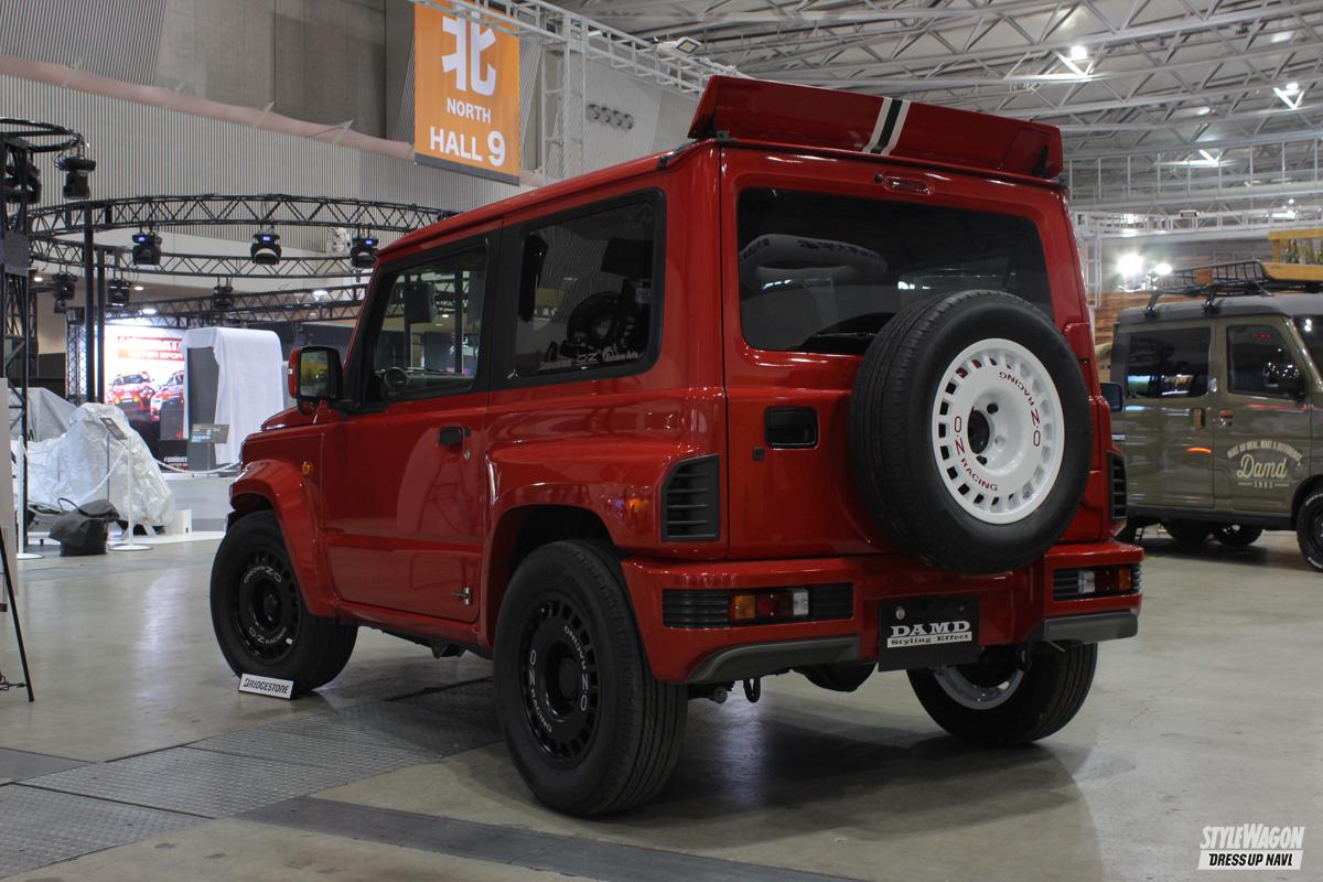 一方往年のレーシングカーを彷彿とさせるのが、ジムニーシエラがベースの「リトルデルタ」と「リトルサンク」。丸目4灯ライトに加え、フロントバンパー、リアバンパー、ワイドフェンダー、ウイングによるコンプリートキットにより、懐かしレーシングスタイルを具現化。さらに両車の注目はホイールも! OZとのコラボによって「OZ RALLY RACING 4×4」を復刻。80年代のラリーデザインを彷彿させるスパルタンなデザインは、ジムニーシエラ専用サイズとして生まれ変わった。