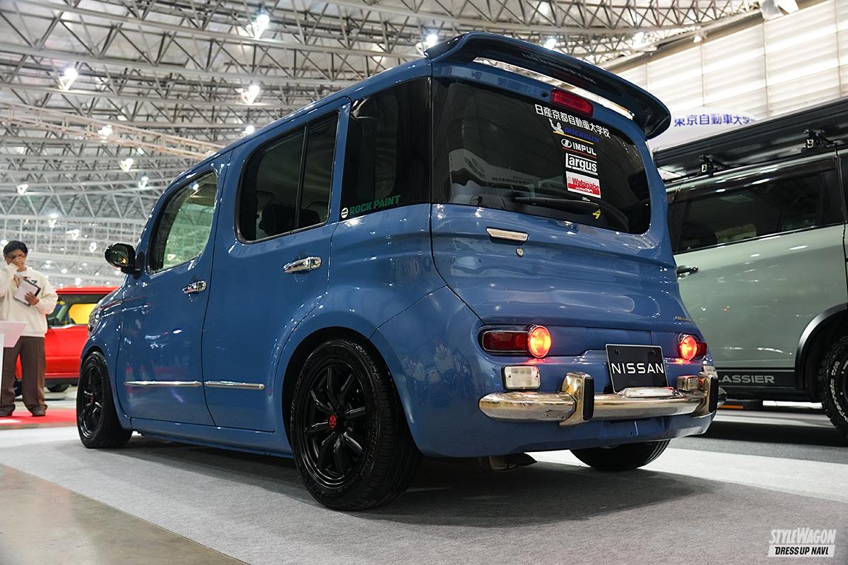 日産車のDNAを次世代に継承させるNISSANブランドの自動車大学校。日産車を知り尽くす教員が実践的な指導を行い、トップレベルの自動車エンジニアを育成している日産京都自動車大学校が東京オートサロン2024に持ってきた2台。コンセプトはおじいちゃん、おばあちゃん、52歳のお父さん、47歳のお母さん、22歳のお姉ちゃん、16歳の弟ちゃんの6人家族がみんな楽しめるクルマと細かく設定だ。