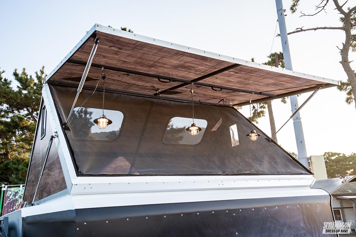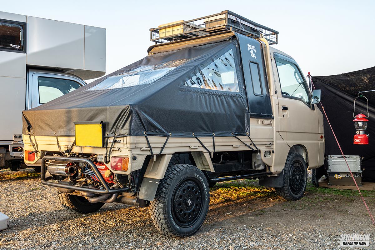バン★トラが遊びゴコロ全開でアピールするのは、変形シェルを持つSUSHIスタイルと余計な装飾を削ぎ落としたNINJAスタイルの2形態。開放感にあふれたSUSHIスタイルのシェルはスチールとアルミを組み合わせ、重量をわずか110kgに抑えることで積載性や走行性能もキープ。一方、組み立て式のフレームを持つNINJAスタイルでは、柔軟性のある幌を用いることで無数のセッティングを楽しむことができる。これはどちらも甲乙つけがたい。
