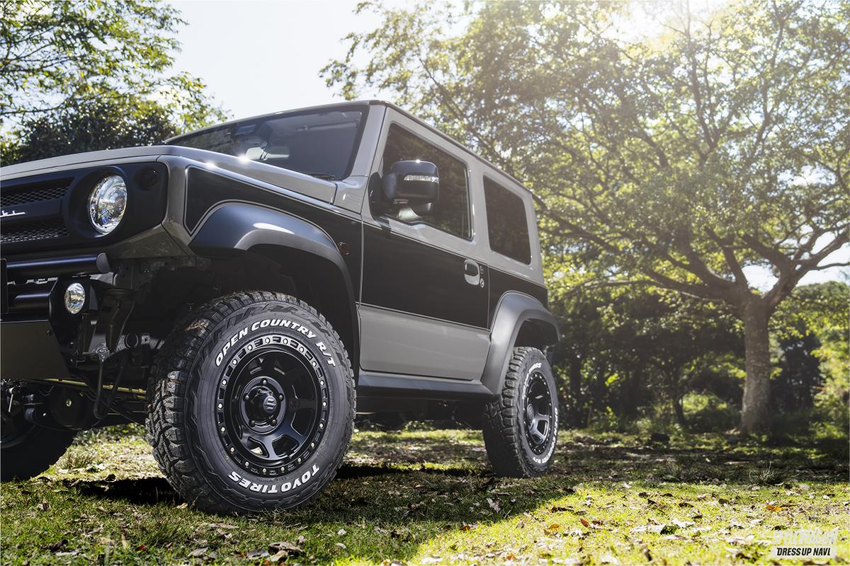 オフ系スタイルの定番ブランドとして、ジムニー乗りからの支持も高いエクストリームJ。その一番の魅力は誰の目にも明らかな、ストレートにワイルドなオフロードデザイン。履けばアグレッシブさが数ランク一気に引き上がる、映え度の高さこそがその最大の持ち味だ。