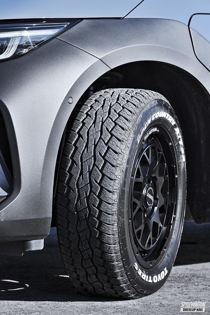 主な使用用途は、当然趣味のキャンプが含まれ、カスタマイズは、タフなイメージのタイヤ&ホイールへの換装、ルーフキャリア追加と手数は少なめ。車高もノーマルだが、タイヤ&ホイールの影響か、少し車高が高く見えるのも面白い。荷室にはディーラーオプションのカーゴマットをセット。汚れにも強く、キャンプも思い切って楽しめそうだ。
