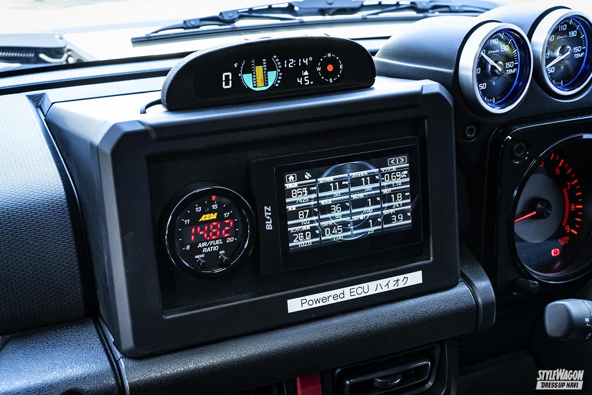 しかし、それはあくまで通常使用時の話。アクセルをワイドに踏み込むと、とんでもなく走る。回転数の上昇に伴い、ターボが立ち上がり、普通の走りとは大きく異なる加速をする。ショウワガレージは、ダート競技にも参戦しており、数多くのタイトルをゲットしている。そのドライバーが検証を行い、ストリートからスポーツ走行までこなせるセッティングを完成させた。JB74も同一で、純正ではまったりとしたフィールで、キビキビとした走りとは無縁な車両だが、書き換えECMを装着すると、激変する。楽しさ倍増なのだ。