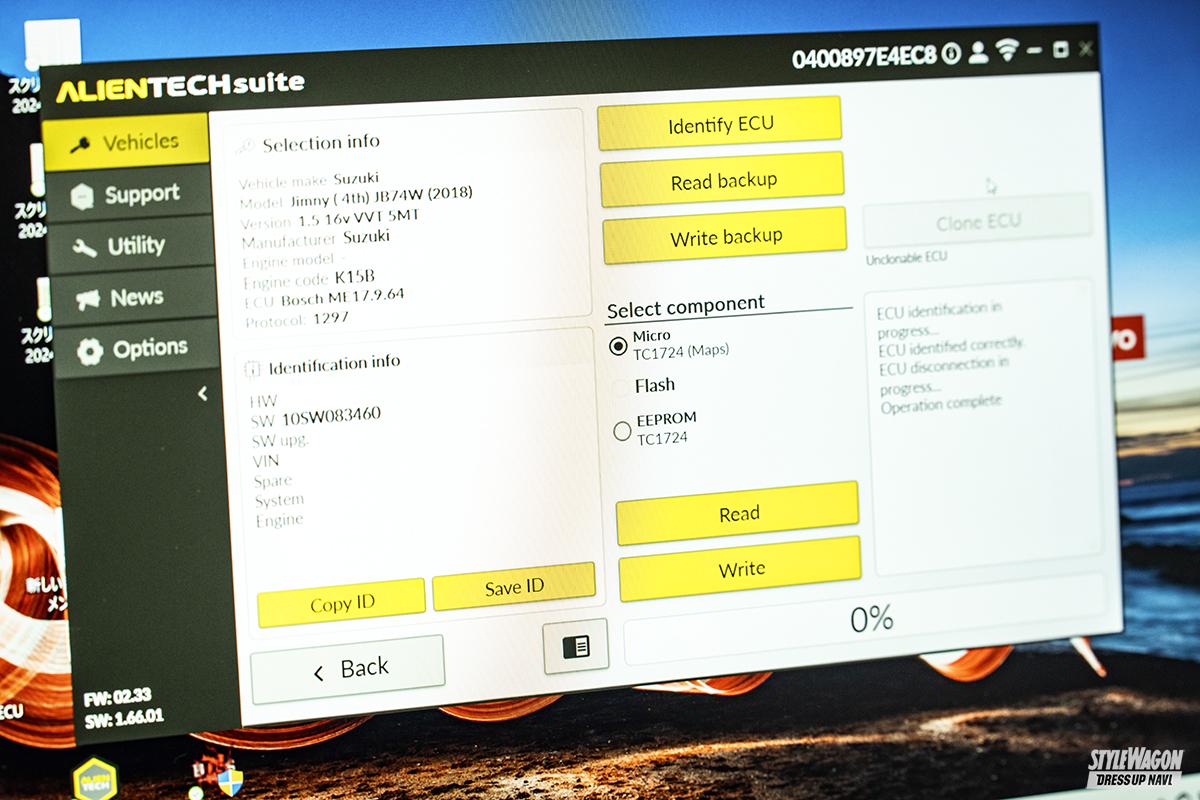 様々なアイテムを続々とリリースしているショウワガレージ。ストリートカスタムを中心に、キャンプ仕様やモータースポーツなどにも対応したパーツラインアップで、ジムニーユーザーに支持されている。ジムニーのカスタムというのは、基本的に足し算だ。タイヤの大径化やリフトアップ、ルーフラックの装着など、ノーマルの動力性能を基準とした場合、マイナス効果が大きい。ジムニーのカスタムは楽しさを優先して走りがスポイルされてしまう傾向が高い。しかし、ショウワガレージでは元々サブコンなどを活用してそのマイナス面に対し対策を講じてきた。そしてついにJB64のECM解析が終了し、書き換えのカスタムが始まったのだ。
