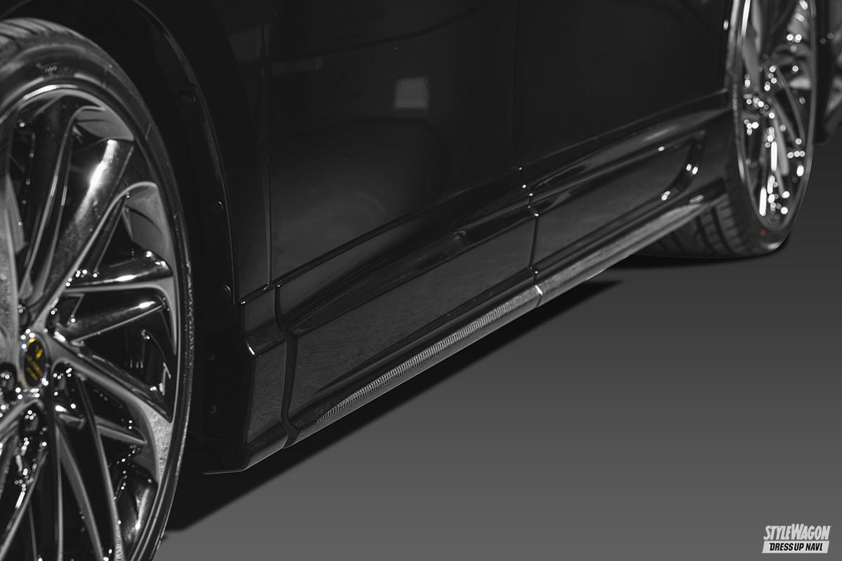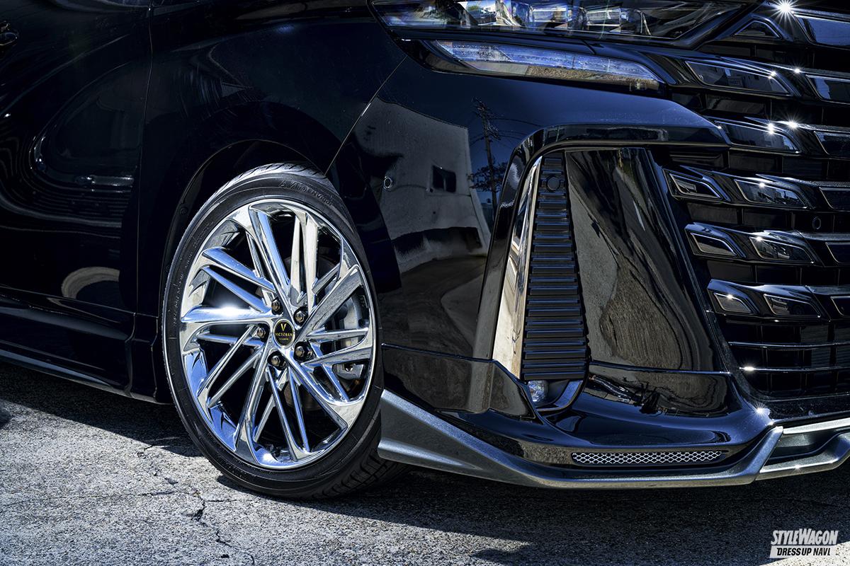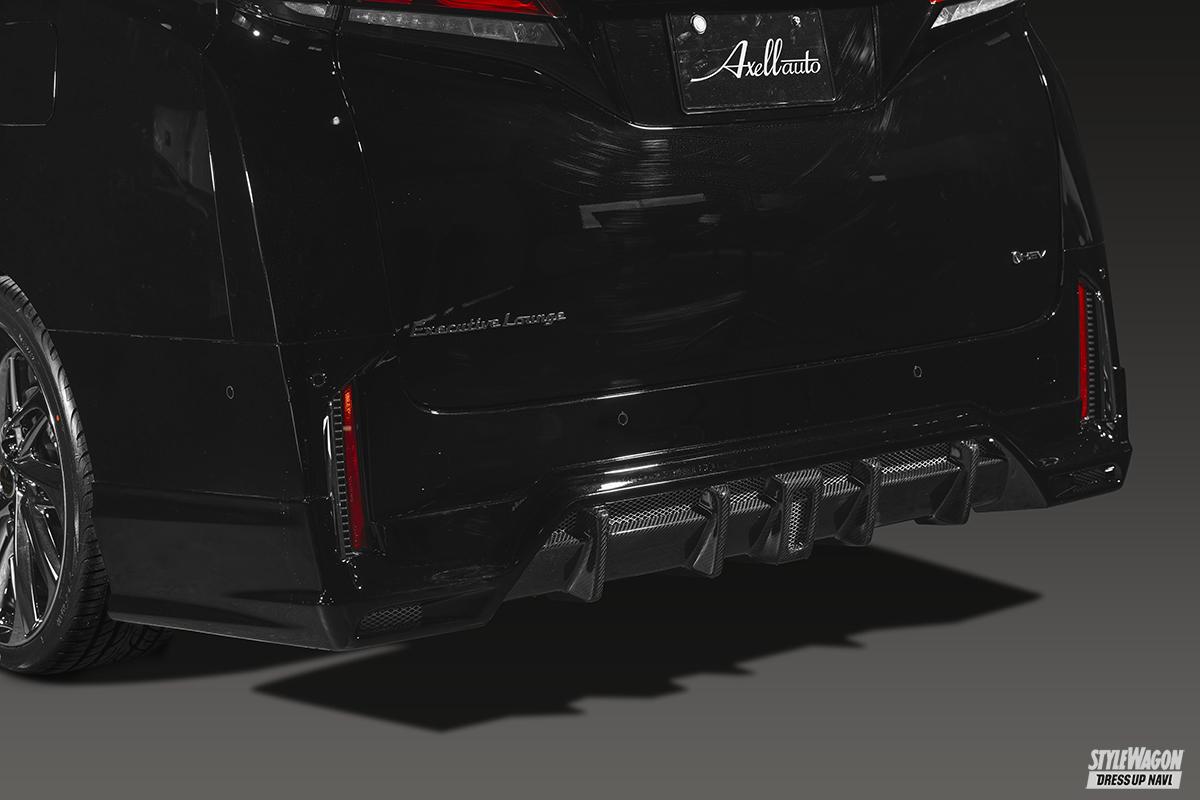 グローバルマーケットを意識した展開を軸足とするアクセルにとって、海外でも人気の高いアルファード&ヴェルファイアは主力車種のひとつ。それゆえ東京オートサロンでは業界最速でアルファード用のフルバンパーエアロを発表して大きな注目を集めたが、同時にヴェルファイア用のハーフエアロも完成。ハーフながらも凝った意匠が採用される。