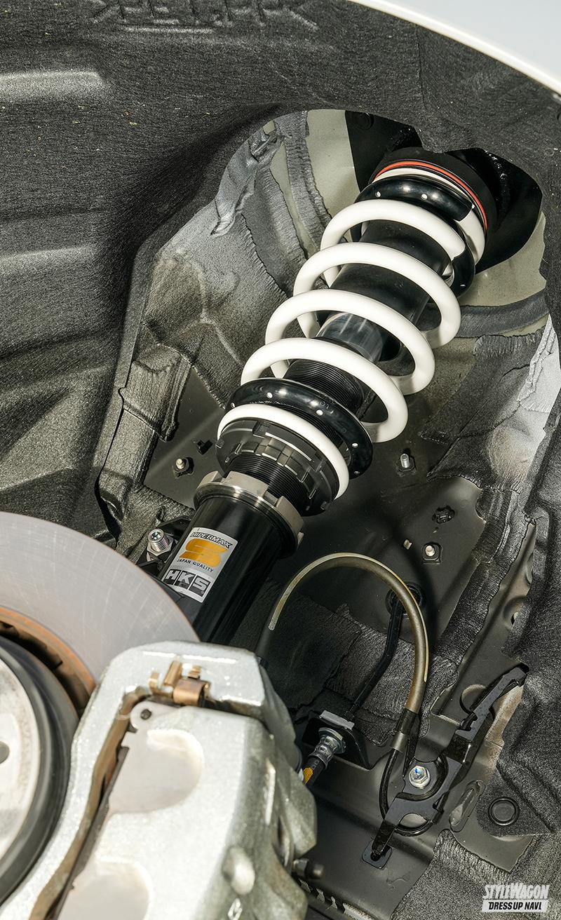 老舗チューニングパーツメーカーであるHKSもサスペンションの開発に全力を注いでいるが、ワゴン&ミニバンユーザーから高い評価を得ている車高調がハイパーマックスS。全長調整式&減衰力30段調整機構付きと、車高調に求められる機能をしっかり導入。さらに「走り心地」をコンセプトに掲げ、独自の機能を採用して走行性能と乗り心地を高次元で両立している。例えばデュアルプリロードバルブシステムは特殊なシムで圧のかけ方を見直し、低速域から減衰力を発生させてあらゆる速度域でフラットな乗り心地を実現。またモータースポーツでのノウハウを活用したアドバンスドバンプラバーは、段差を乗り越えた際のバンプタッチのキツさを抑えて穏やかなタッチ特性が味わえる。対応車種も着々と増やし、昨年から40アルファード用の開発を進めていたが、ついにデリバリーを開始。