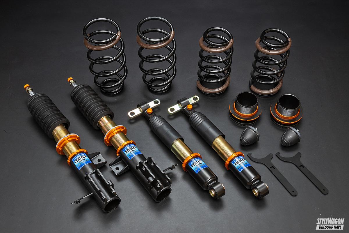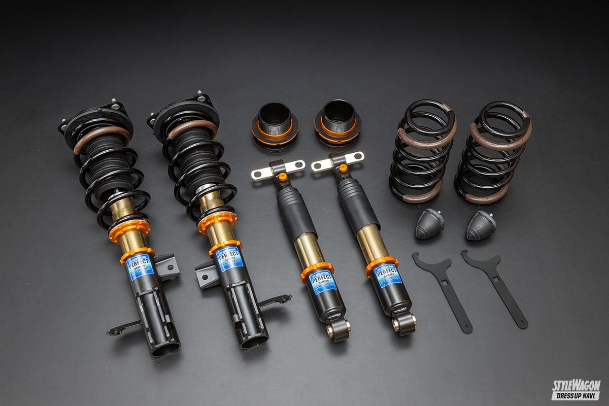 歴代アルファード&ヴェルファイアオーナーからも絶大な支持を集めるアクシススタイリングの車高調「パーフェクトダンパー」シリーズ。これまで培ってきたノウハウや、妥協を許さない走行テストを繰り返し完成した40アルヴェル用が“パーフェクトダンパー6G”だ。各グレードや駆動方式に応じた専用セッティングを施すことで、どの車両においても上質な乗り心地と高い走行性能を発揮。2列目・3列目の乗員に対しての快適性も良好で、ロングドライブでも満足できる仕上がり。