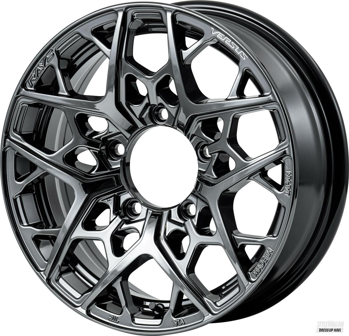アウトドア仕様からクラシック系、スポーツにミリタリーとスタイルがどんどん多様化しているジムニーのカスタムシーン。ならば固定概念に縛られず、新たなオフロードデザインを選択肢として提案するのもアリではないか。そんな想いから生まれたのがベルサスの最新作、VV25MX。ビードロック調デザインをあえて排除した、ジムニー&シエラへ向けて専用で設計した新機軸だ。