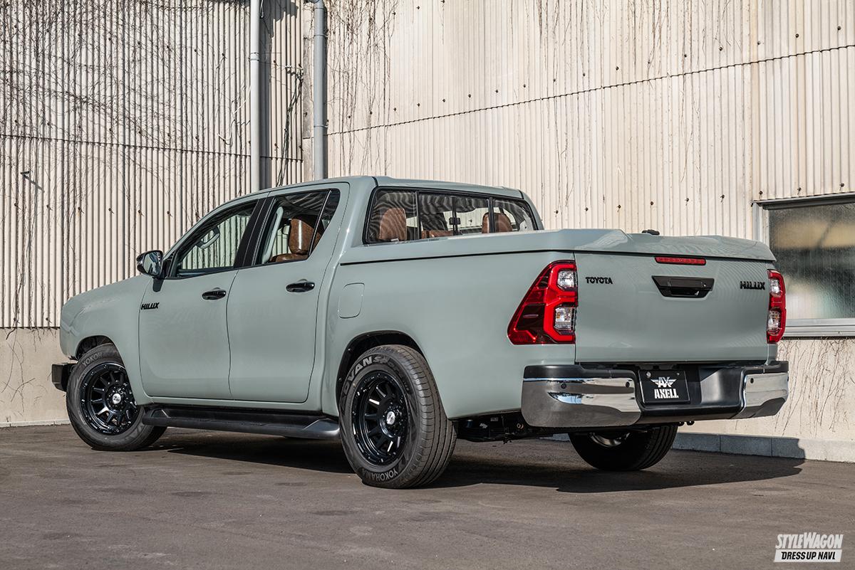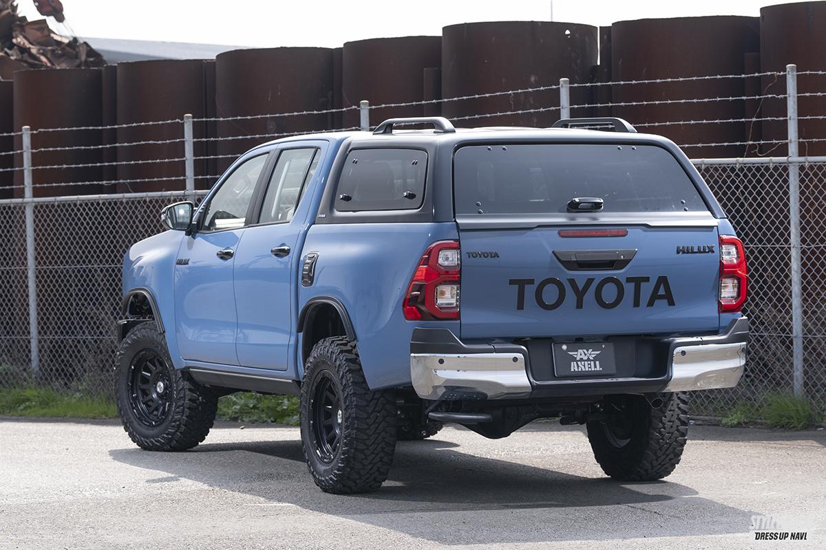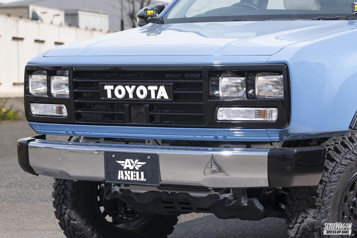 前期モデルのころからハイラックスに積極的だったAxellauto(アクセルオート)が長い開発期間をかけ、完成させたのがこのブロディ・フェイスチェンジキット。ホンモノのアメ車であるかのようなレトロアメリカンテイストを獲得できるのがその魅力で、イメチェン度と車種不明感の強さは圧倒的。クラシック好きであれば選んで絶対に後悔しないプログラムである。