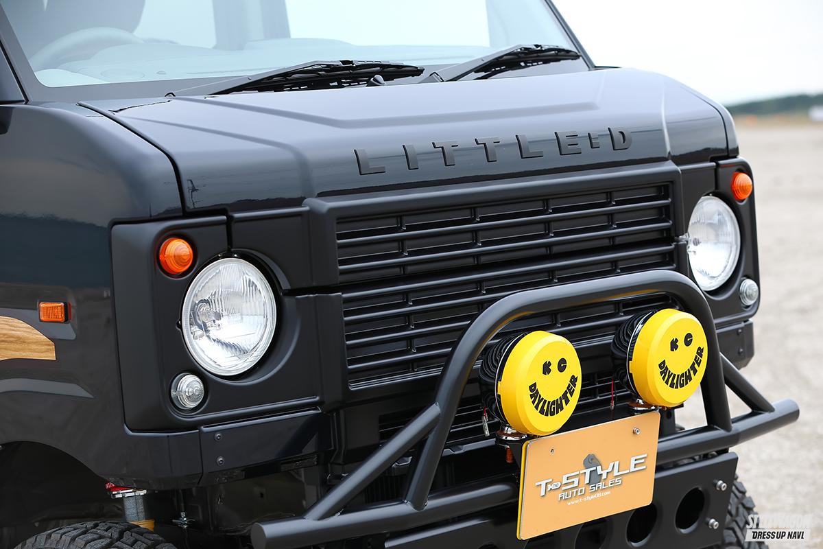 グレーに投入されたジムリィキットは、Tスタイルの定番的な印象を持っている方も多いだろう。64/74ジムニーのグリル&ヘッドライトを装着するために周辺パーツをキット化したもので、登場当時は話題となったのでご存じの方も多いかと思う。