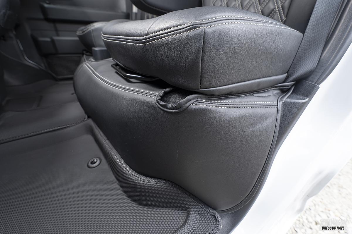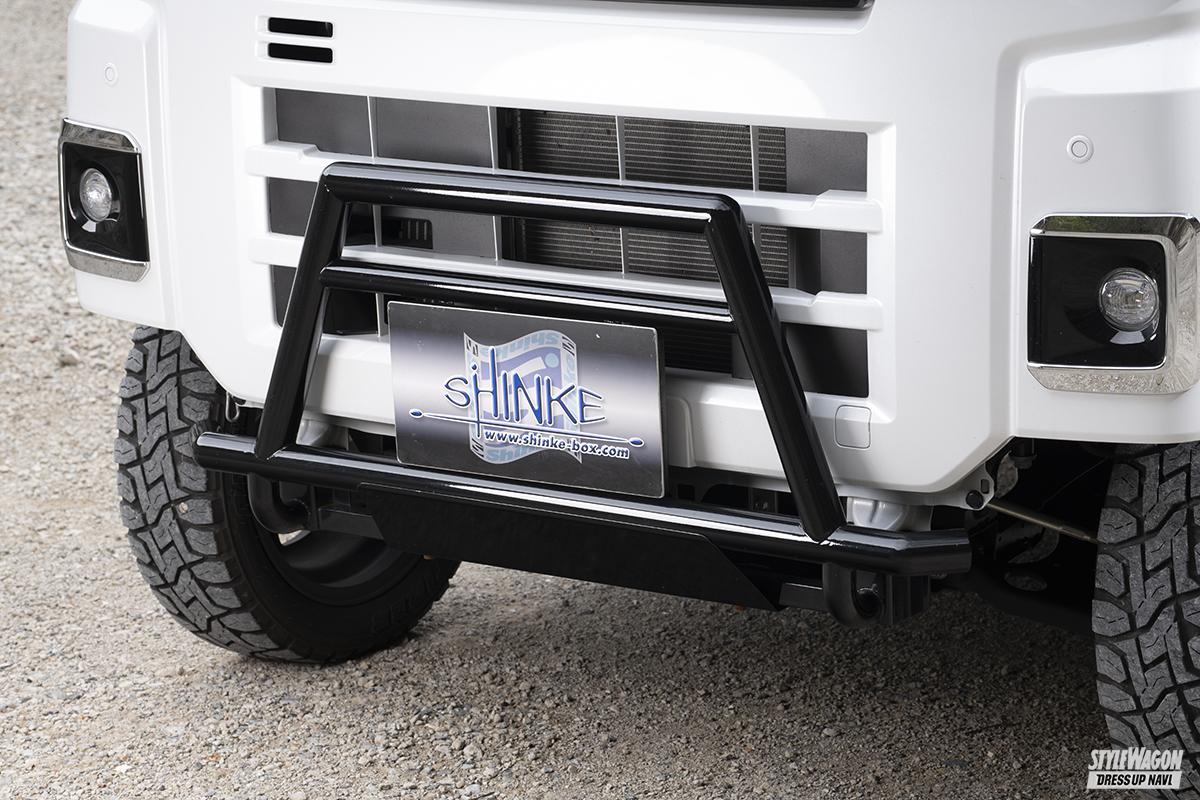 今回新たに加わったアゲ用アイテムは、フロントアイアンバンパー、アンダーガードで、純正バンパーをカット加工したフロントにジャストフィット。オフタイヤと合わせれば、人気のアウトドアやキャンプ場などでもバッチリと映えるスタイルとなっている。デモカーには装着されていないが、今後サイドガードとリアバンパーガードもリリースの予定となっている。どちらの仕様もコンプリート販売可能なので、気になる方は要チェックだ。