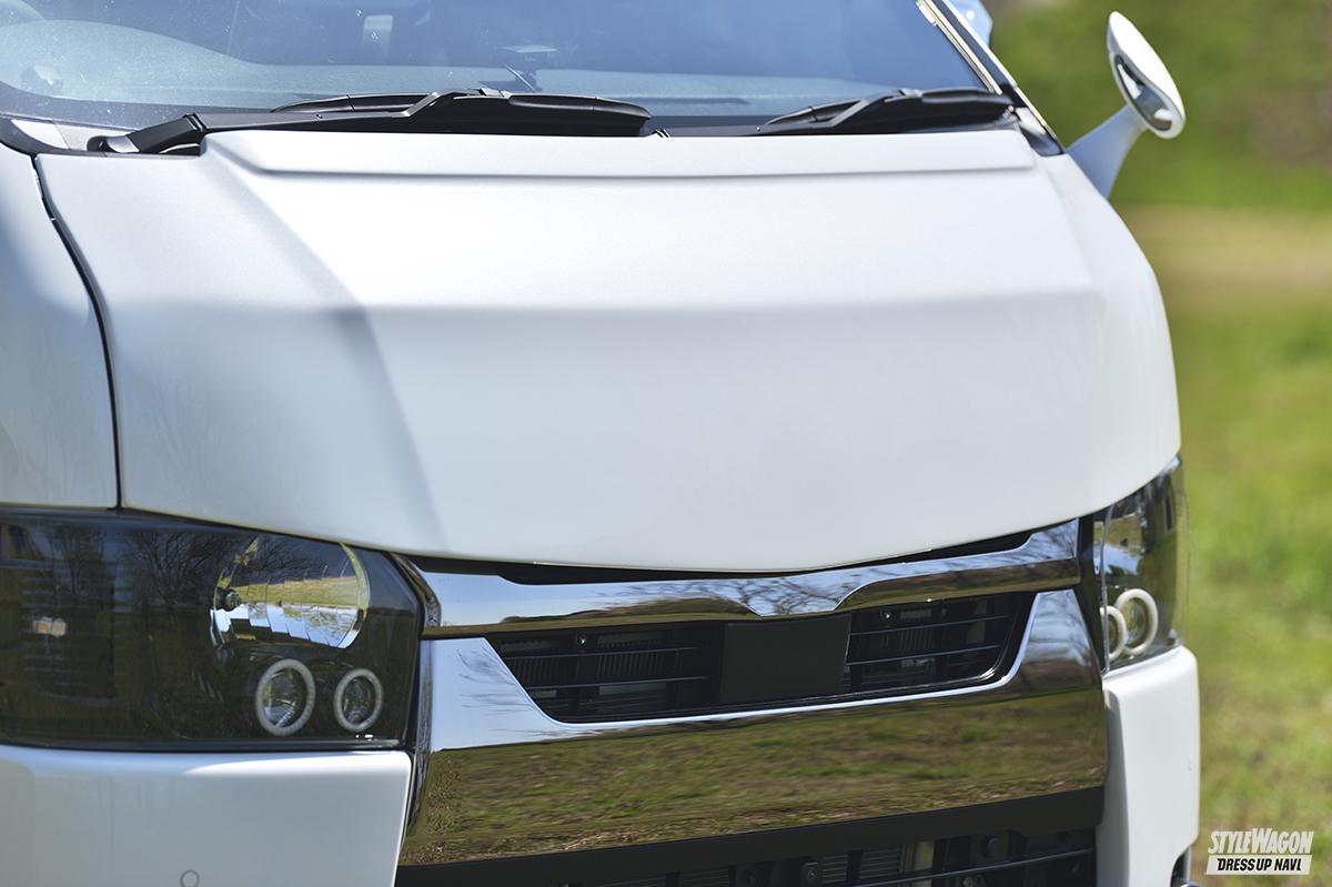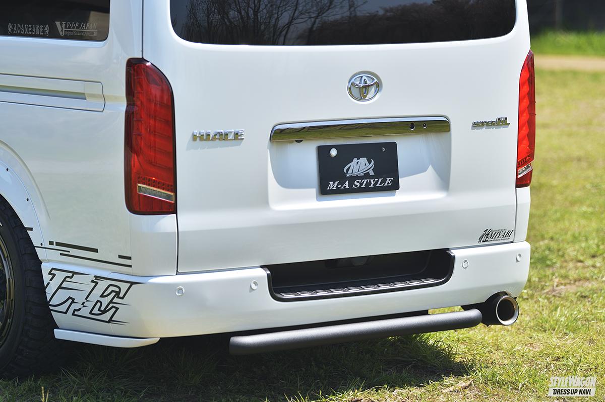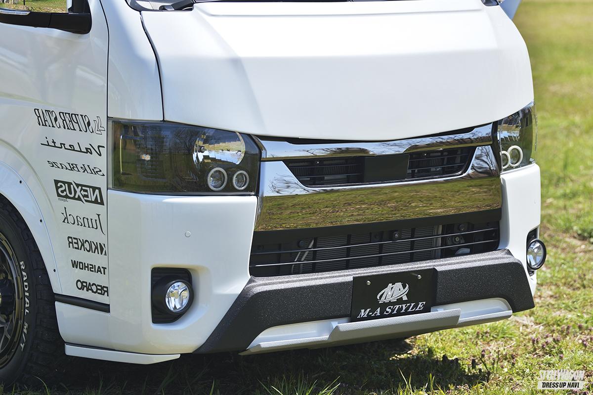 アルファード&ヴェルファイアなどの車高短乗りに人気のアヴァンツァーレが手がけるハイエース用ボディキット、M-A STYLE(M-Aスタイル)は、話題のオフ系スタイルとローダウンフォルムの両立を叶えてくれると注目を集めている。フロントはプロテクターとアンダーディフューザーを別体で用意。その結果、複雑な立体構造を可能とし、しっかりとオフ感のあるフェイスを構築している。