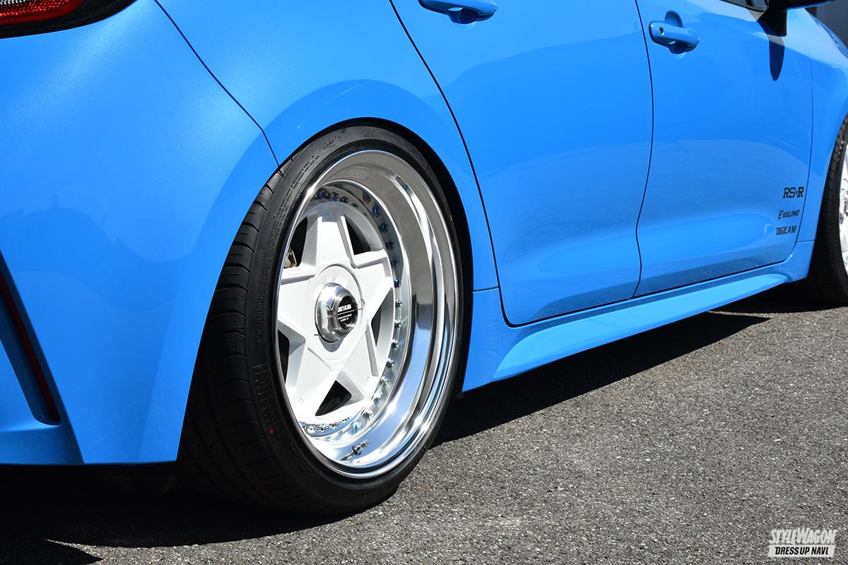18ノーマルに追加されたダブルステップリムは、本来の倍となる2インチ分の面積をリムに与えた造形で、リムのディープ感が強烈。さらにリムをアピールしやすいアンダーヘッド工法も併用するなど、リム魅せを極限まで追求した仕様となった。