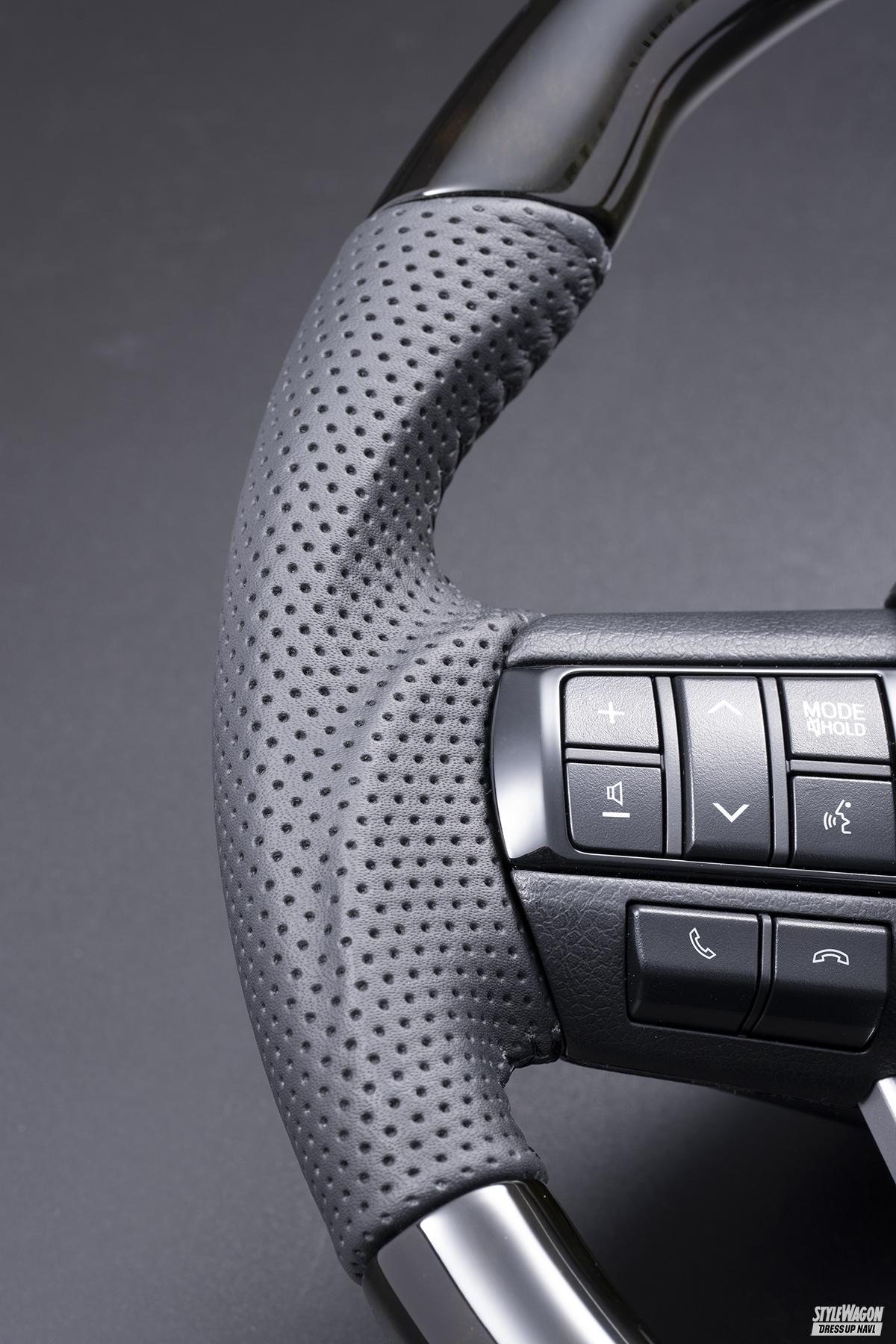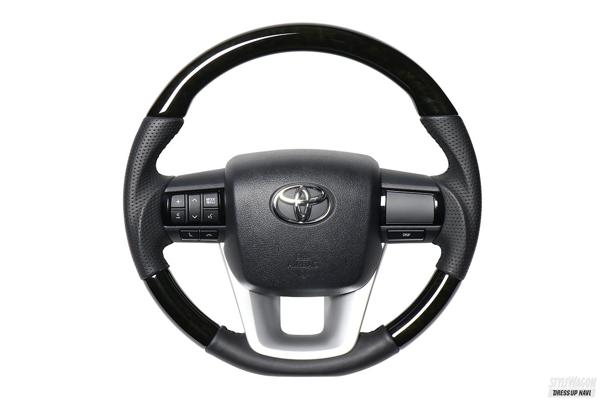 そしてハイラックス用のニューモデルとして内側にレザー、外周にウッドを施した欧州車テイストのコンビタイプ「ハーフウッド」が新登場。プレミアムな雰囲気を求める人にぜひ勧めたいアイテムだ。
