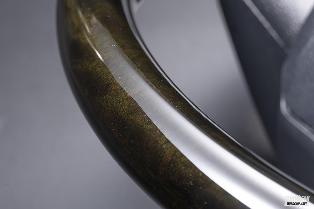 多くのユーザーが愛用する、純正交換型ステアリングのプロフェッショナルと言えばレアル。人気の秘密は豊富なカラーと優れたデザイン、そして質感の高さ。売れ筋のソフトDシェイプは下側をさり気なくフラットにし、なおかつガングリップ形状を採用することでスポーティに仕立てた逸品。質感においてはレザー部分に高級牛本革を使用。ウッドは天然本木。カーボンもプリントではなく本物のカーボン素材を使う。それぞれ硬被膜クリア塗装を何度も塗り重ねて艶やかな質感を実現。作りも純正同等の強度を持ち、グリップ内部の素材も天然木を細かく砕いて圧縮成型したウッドチップ圧縮材を使用しており、万が一事故で破損してもささくれが出にくい。第三者機関での強度試験も実施済みだから安心して使える。