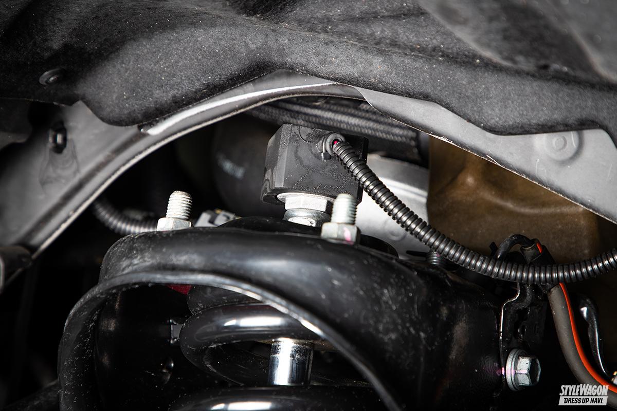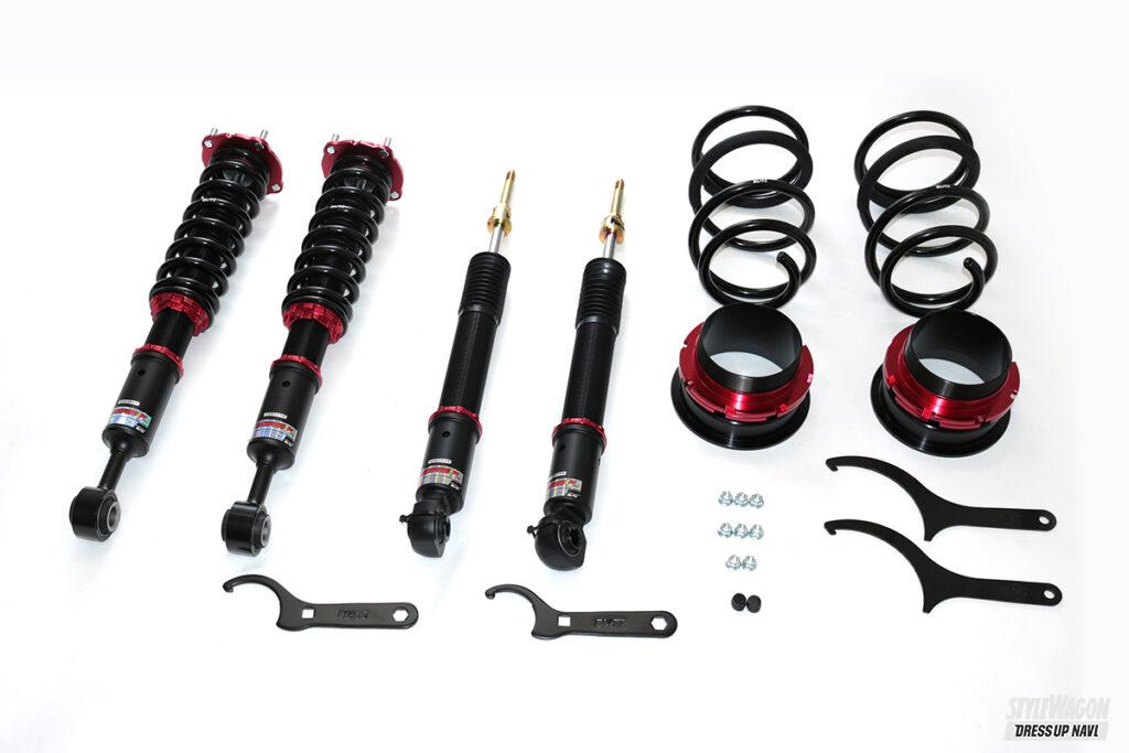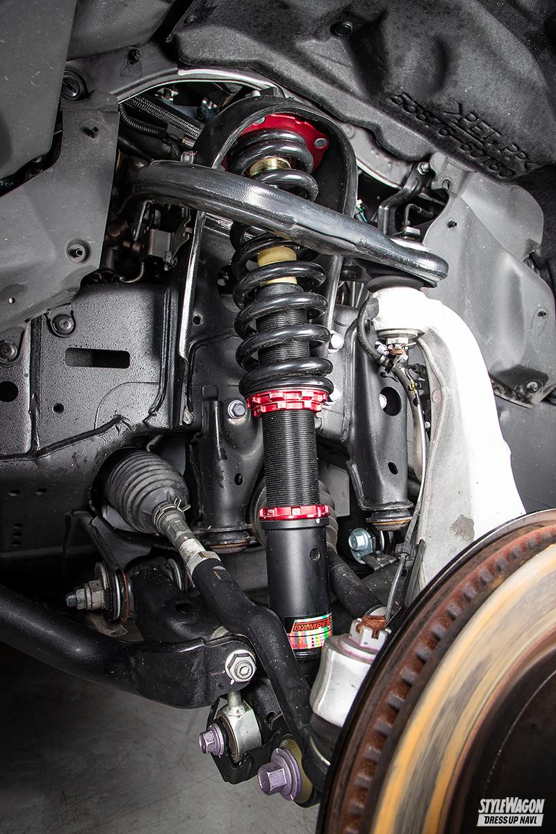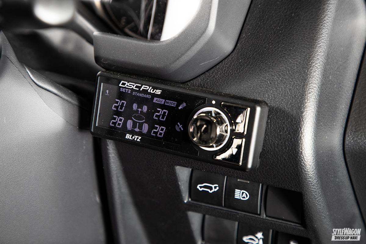 スポーツ系に強いブリッツは、この“走り”に関わる部分にもこだわっている! 同社の『ダンパーZZ-R』の“アップ仕様”キットは、リフトアップに対応したスプリング&ダンパーを採用していて、走行時の安定感は抜群。腰のある乗り味なのに、揺すられ感はない、という絶妙の乗り心地だったのだ。しかも、車内からの減衰力調整が可能な『DSCプラス』も設定予定。フルオートモードを選べば、難しい減衰調整も、走る環境に適した減衰に自動で調整。使い勝手も抜群だ。
