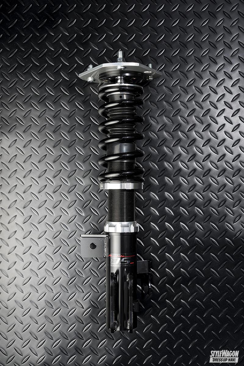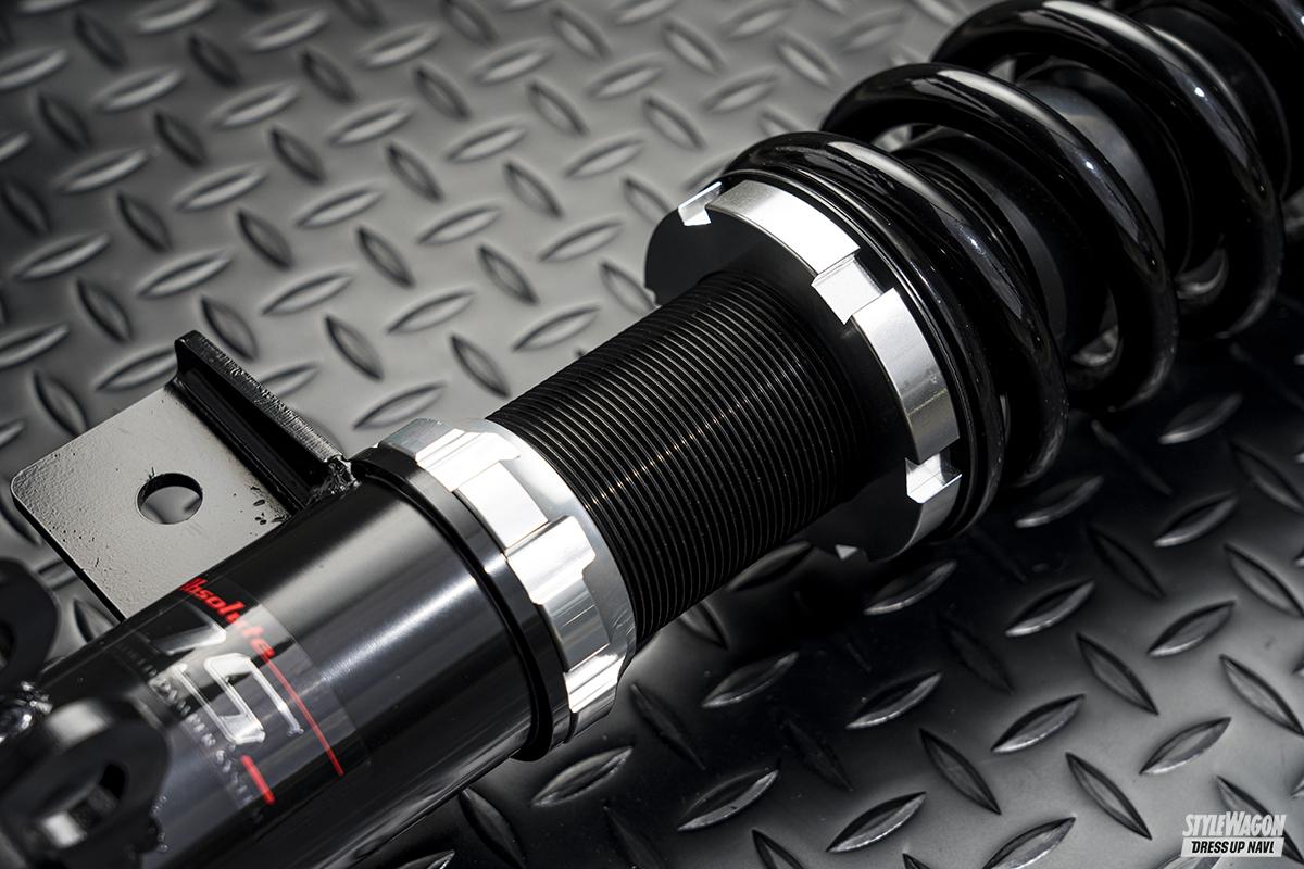 ハードなローダウンを可能とするエアサスのブランドとして、多くのカスタム好きからアツい支持を受けるボルドワールド。カスタム最優先の足まわりメーカーと思われがちだが、過去にはS耐など国内メジャーレースにも参戦するなど、レースシーンでのノウハウにも長けている。そのボルドワールドが、モータースポーツで培った技術をフィードバックして誕生した車高調が「アブソリュートDSネクスト」だ。乗り心地や耐久性の向上を目的に、ストローク量を増やすことに注力。ダンパーの内部構造や各部パーツの精度を徹底的に高めることで、「低さ・走り・乗り心地」を高次元でバランスさせた。減衰力は32段階の調整機構付きで、サーキットから乗り心地重視の街中走行まで幅広い乗り味をカバーする。