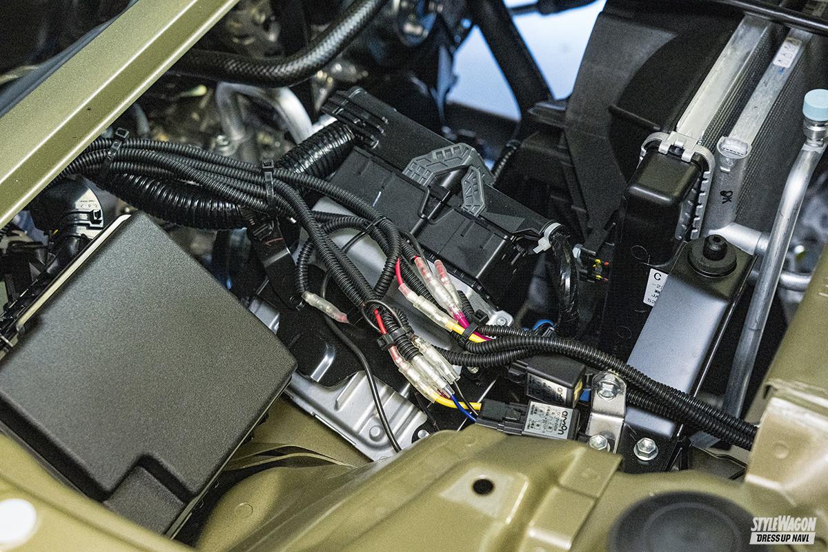 カラープロテクターのオプション品、LEDサイドマーカー。マーカーの取り付けステーはS500ハイゼットジャンボ専用設計。ステーをカラープロテクターと共締めして付ける。点灯させるにあたり別途エーモンの4極リレーとミニ平型ヒューズホルダー15A、貼り付けクイックスイッチを用意する必要がある。