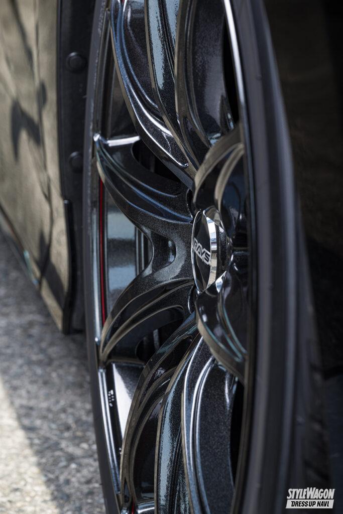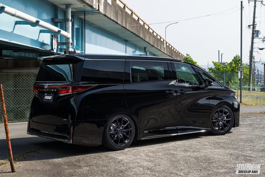 そんな正統派スポーツの薫りが漂うVV25Rだから、40系アルファードや、特にターボの搭載を意識してスポーツ度の高いフォルムが採用された40系ヴェルファイアとの相性は極上。細身の2×5デザインだがスポークの広がり感が強く、側面がステップ形状となるなど立体感も十分で、40系の車格にも負けない力強さも獲得できるからだ。