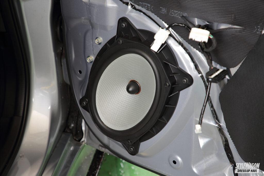 サンプル車はVNレヴォーグ。純正は下の写真の通り、ベース部が楕円形状なのに、丸型スピーカーがついている(フロント)。つまり、スペースを無駄にしているのだ。そこでまず6×9インチのダイヤモンドオーディオ製スピーカーを軸にキットを構成。さらに、端子にアイスフューズでお馴染みのディープフリーズ技術を投入したのだ。