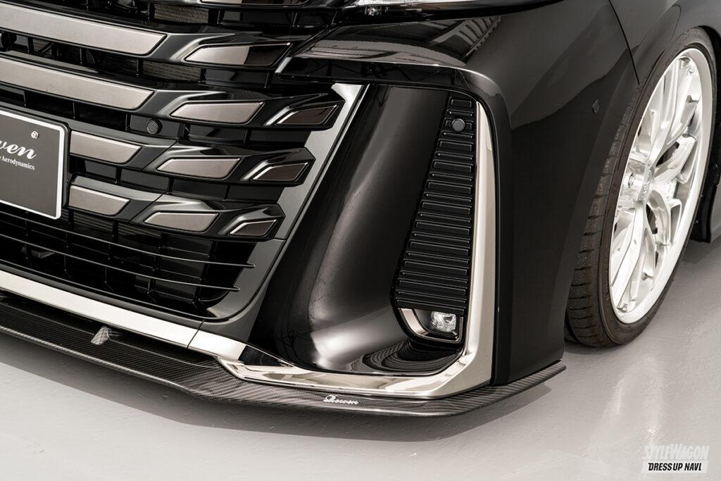 アルファード用と同時発表となったもう1つの新作、ヴェルファイアも、基本的なコンセプトは同じ。リップスポイラーは比較的手軽に挑戦できる入門エアロとしてもオススメのカテゴリーだが、そのシンプルさに溺れすぎることなく、ロェンらしい違いを追究しつつ、細部まで入念にデザインしたスポーティなエアロとなっている。