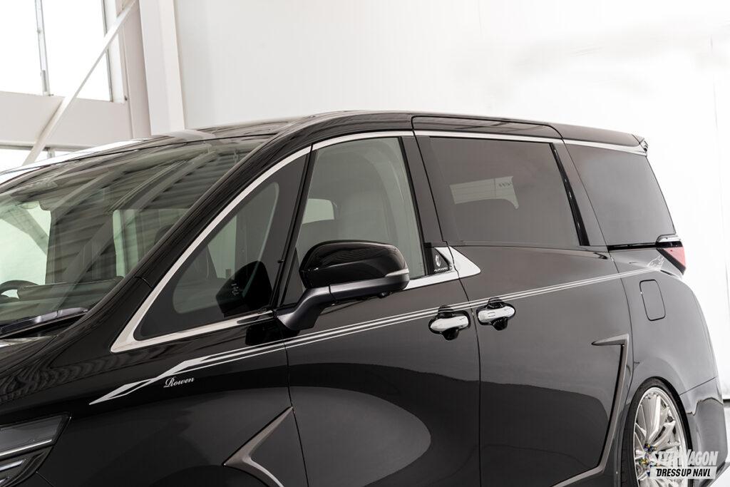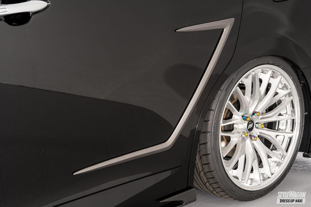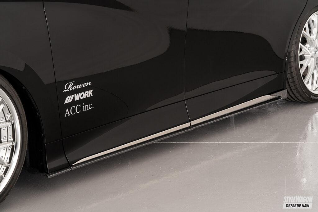パーツラインアップはアルファードに準じたもので、ボディサイドを彩る斬新なエクステももちろん用意。全パーツでカーボンが選べる事実は、新作にかけるロェンの意気込みの高さを現すものといえそう。良品にお金を出し惜しみしないアル&ヴェルユーザーの琴線にも、強く響くのではないだろうか。