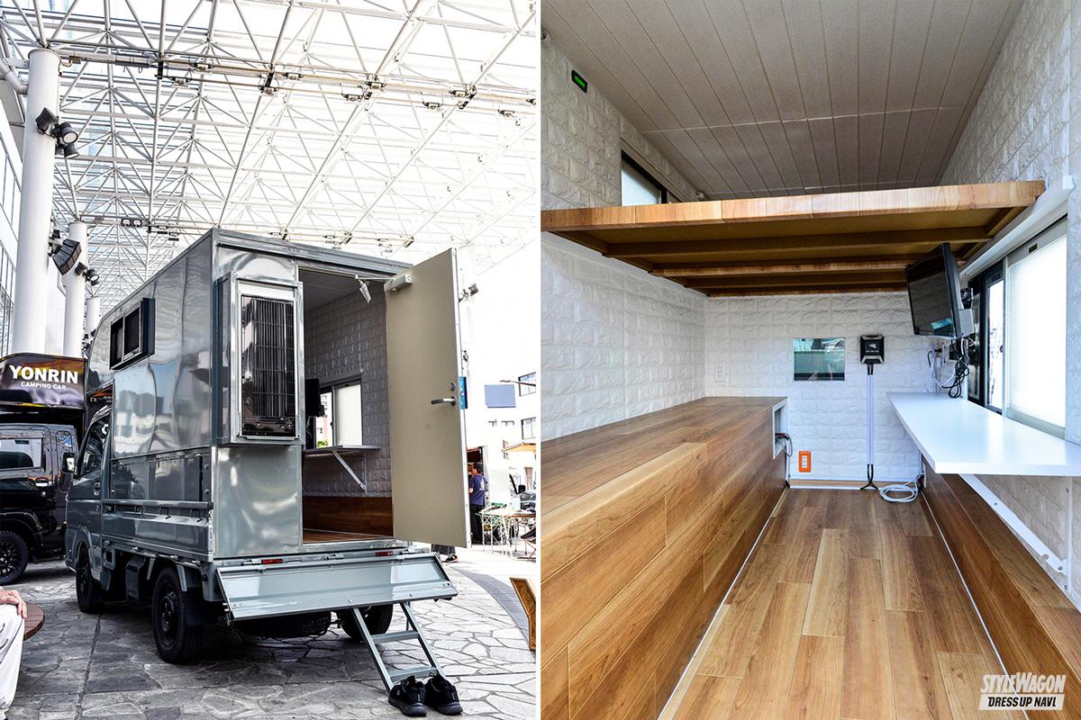 シェルの製造(中のセットアップも含む)のほか、キャンピングカーの貸し出しも行うキャンピングカーゲート東墨田。車中泊にもってこいのRVパークも展開中だ。同社のデモカーは、家庭用エアコンがインストールされているのが最大の特徴。「コレ目当てでウチに来るお客さんが多い」そう。快適性抜群の車中泊を求めるなら、コレは気になるだろう。