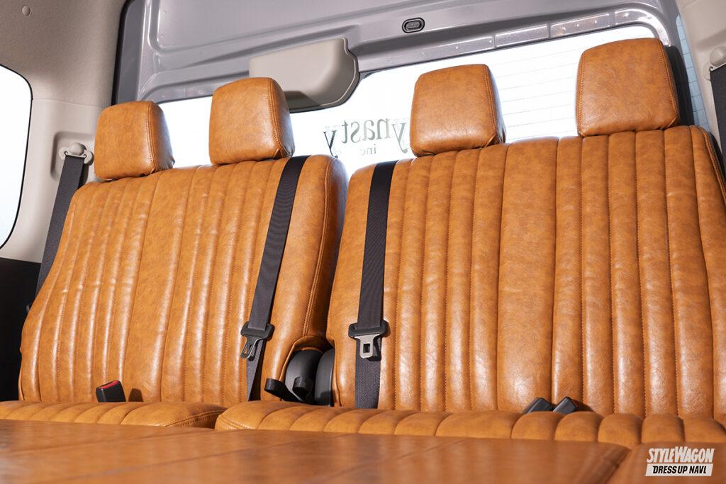●シート仕様:2列目 2名掛け純正シート、3列目 後ろ向き2名掛け、4列目 4名掛け純正シート