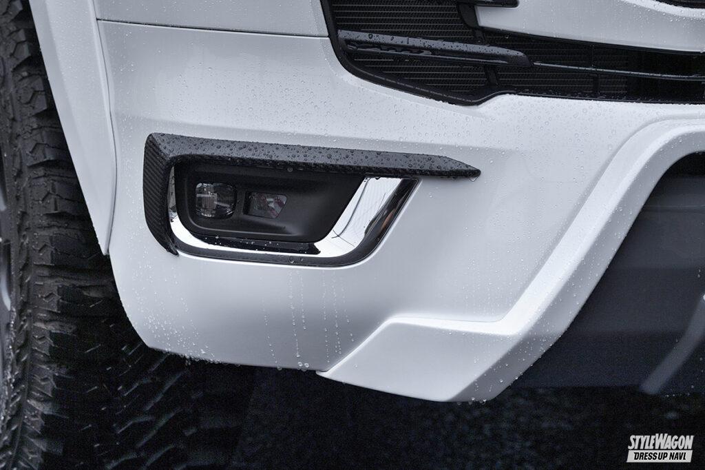 特撮車が装着するのは前者の「アンダーカバー」。純正バンパーの中央のみが対象で、オフの真髄といえるスキッドブロック風意匠が特徴だ。持ち前の対地障害角に大きな影響を与えることなく、ワイルドに仕上げることができる。一方アーバン系は、より広範囲をカバーする「ハーフタイプ」。両者とも純正バンパーありきの被せ型だが、見た目は明らかに違う。