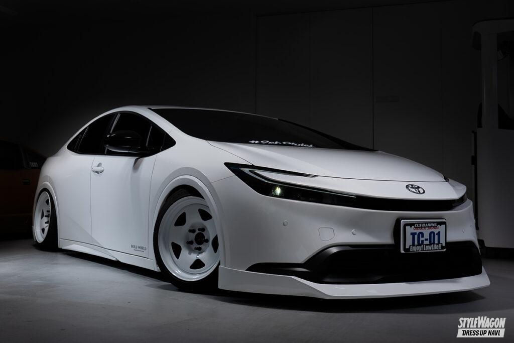 60系登場から最速級のタイミングでボディキットを完成させてきたCLS。スポーティな60系との親和性を考慮したRM(レーシングモディファイ)からのリリースで、低さと走りやすさの両立を目指した仕立てとなるのがその特徴だ。RMシリーズは古き良き時代のレーシングフォルムをオマージュし、それを現代的に再構築するのが一番のこだわり。この60系用でもフロントは往年のチンスポ風としながらも、純正グリルのななめのラインと、スポイラー天面のスラントさせた面形状とをシンクロさせるなど、緻密。ベタ落とし状態でも走れるサイズ感となっているのも大きな魅力だ。